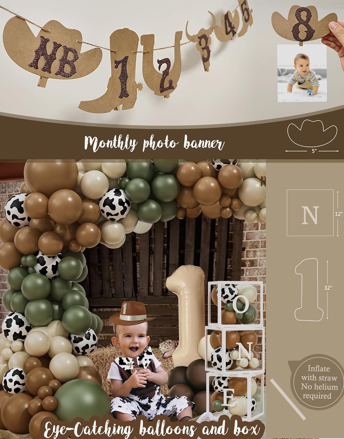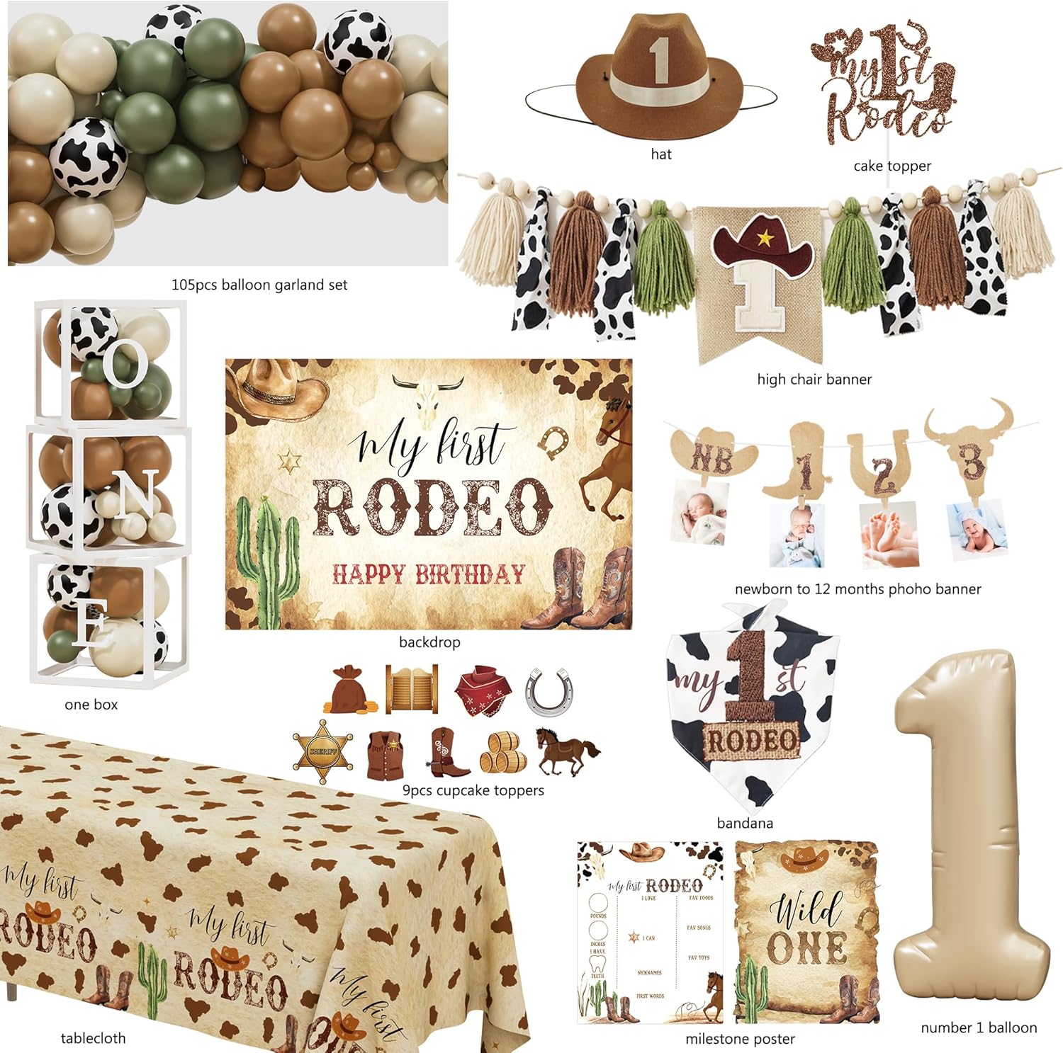 Western Cowboy 1st Birthday Decorations, My First Rodeo Birthday Party Supplies, Cowboy Balloon Arch Backdrop High Chair Banner ONE Box for Boys One Year Old Party