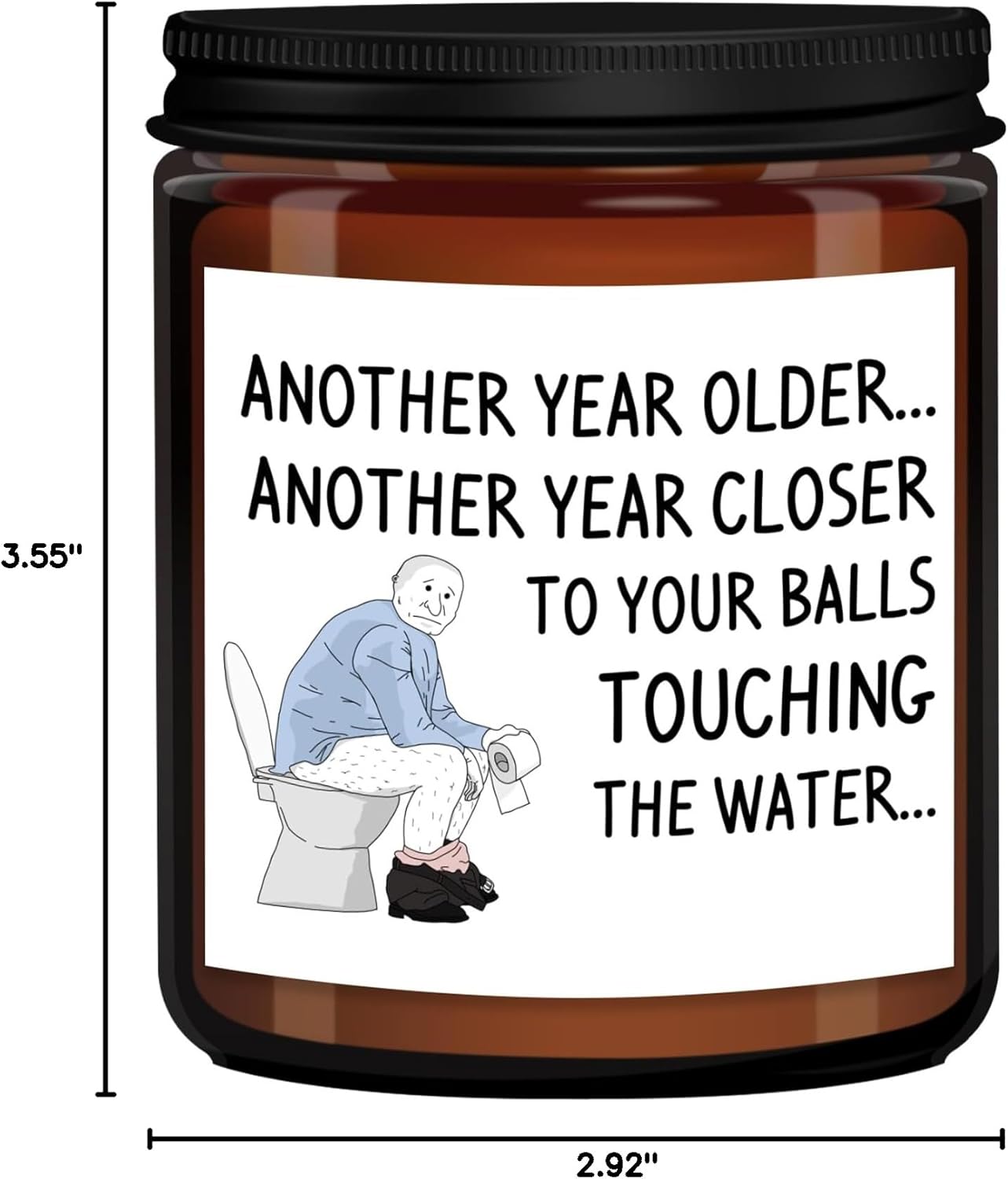 FUNNY GIFTS MENS GIFTS – You can imagine his facial expression when he open the candle printed on the jar with “ANOTHER YEAR OLDER…ANOTHER YEAR CLOSER TO YOUR BALLS TOUCHING THE WATER…”. It is definitely a surprise! Will definitely make him burst into laughter. Funny birthday gifts for men dad boyfriend him husband brother best friend birthday gift ideas, gag gifts for men 65th 30th 75th 60th 40th 50th birthday gifts for men Christmas gifts stuffers for stocking, happy birthday candles.