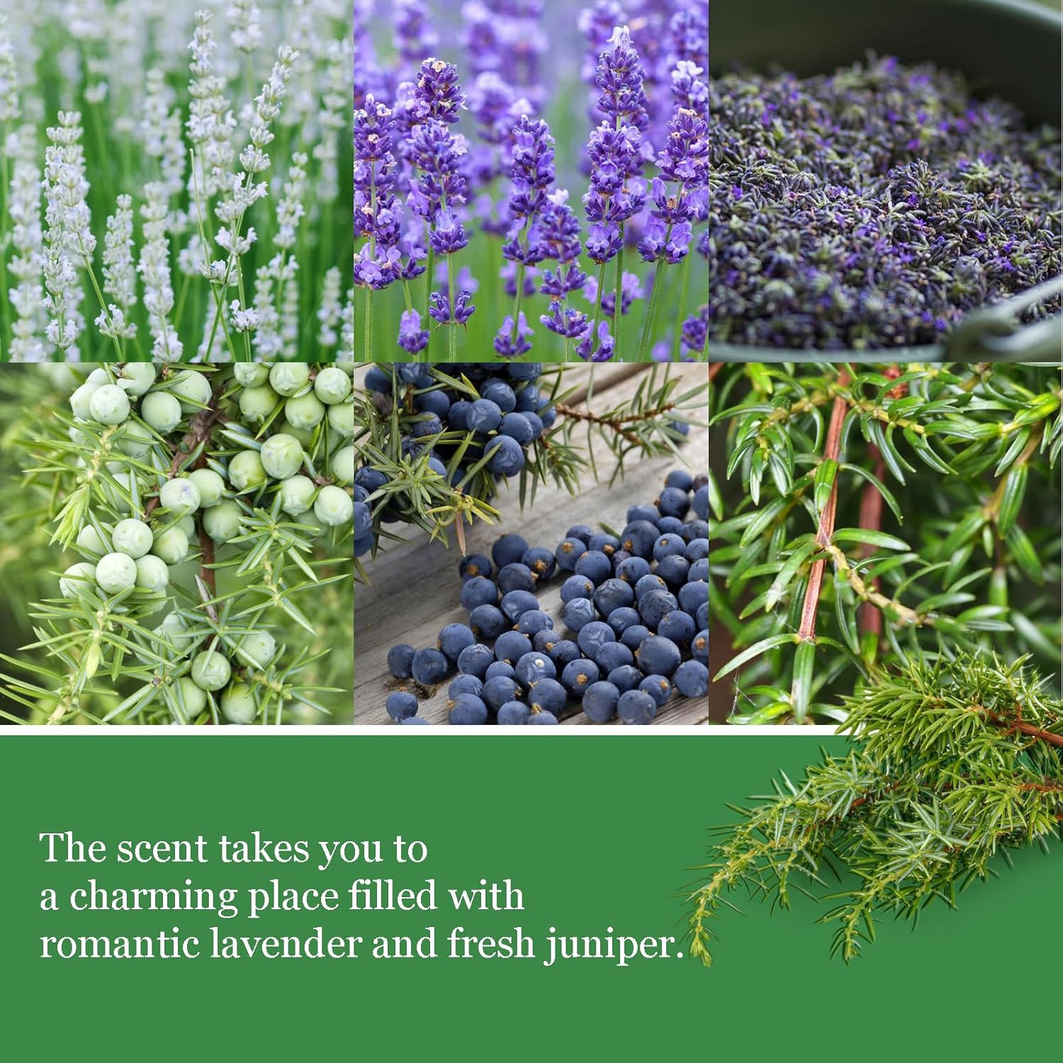 Fresh lavender, juniper, appropriate scent won’t be too strong.