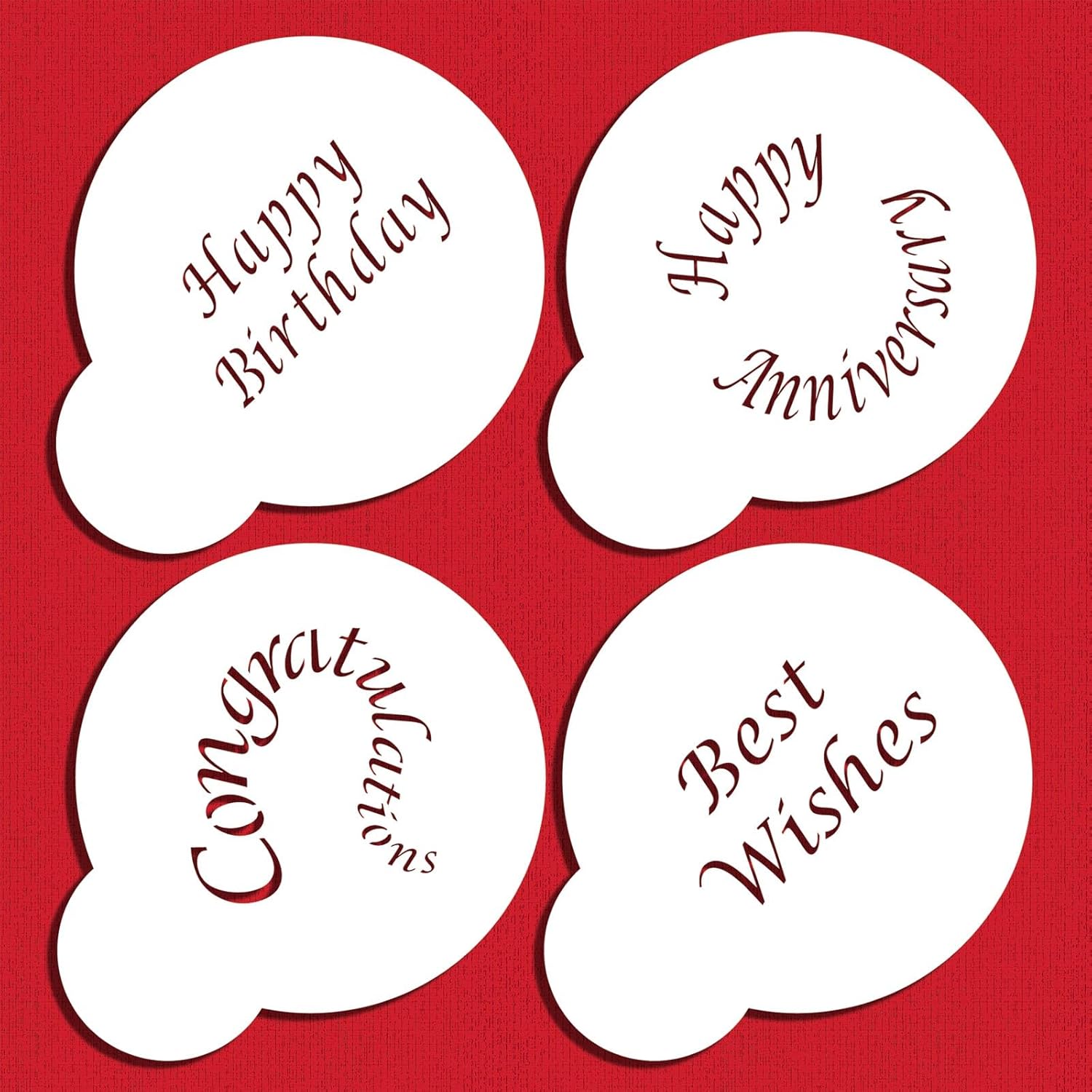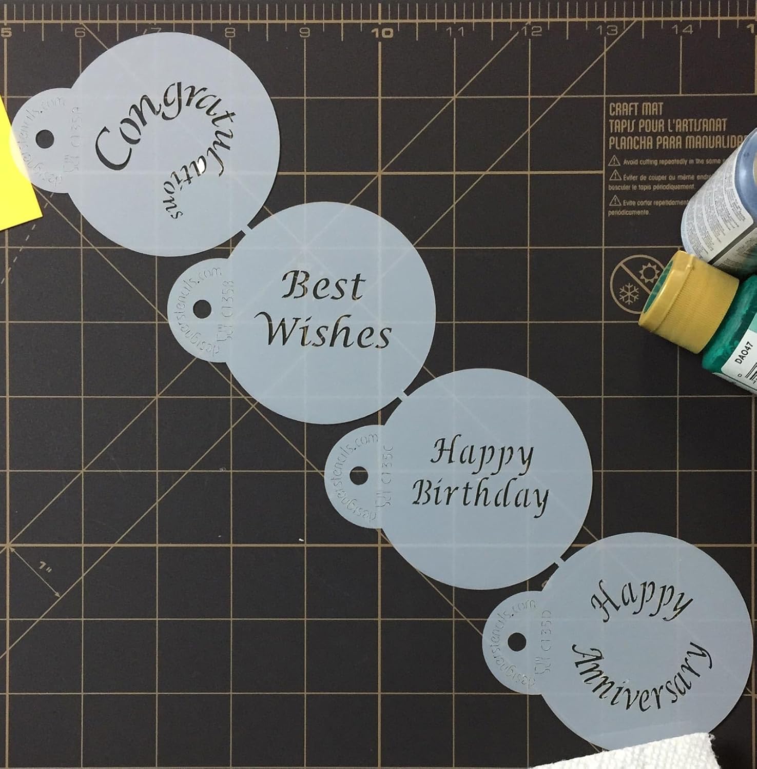 Designer Stencils Special Occasions Candy and Cookie Stencils (Congratulations, Best Wishes, Happy Birthday and Anniversary), Beige/semi-transparent