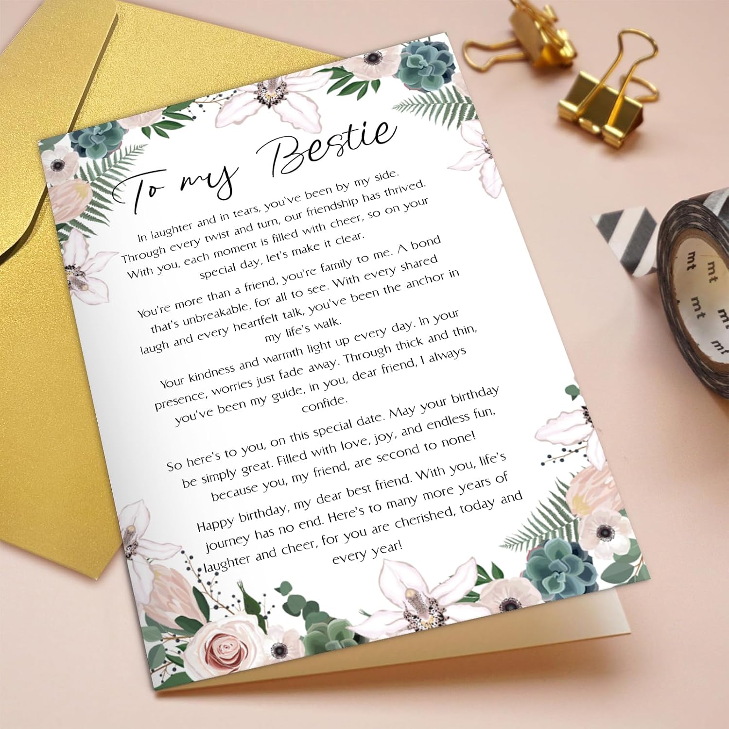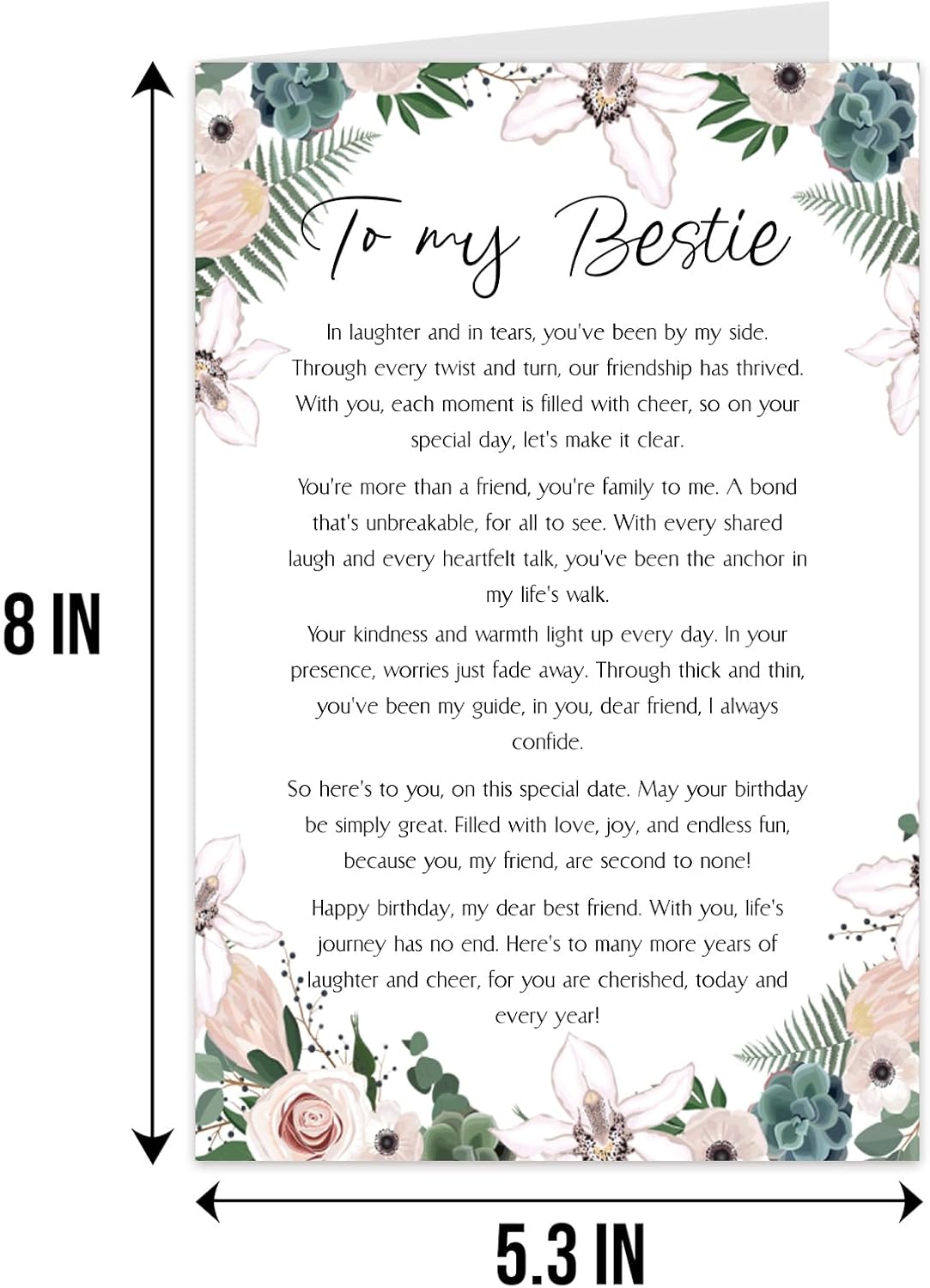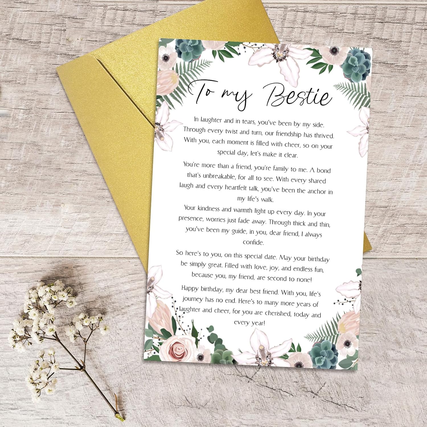 All card are printed on high-quality 300gsm card stock with a matte finish. Great bestie birthday gift for all the laughter, tears, joy, support, and love that make every moment with them unforgettable.