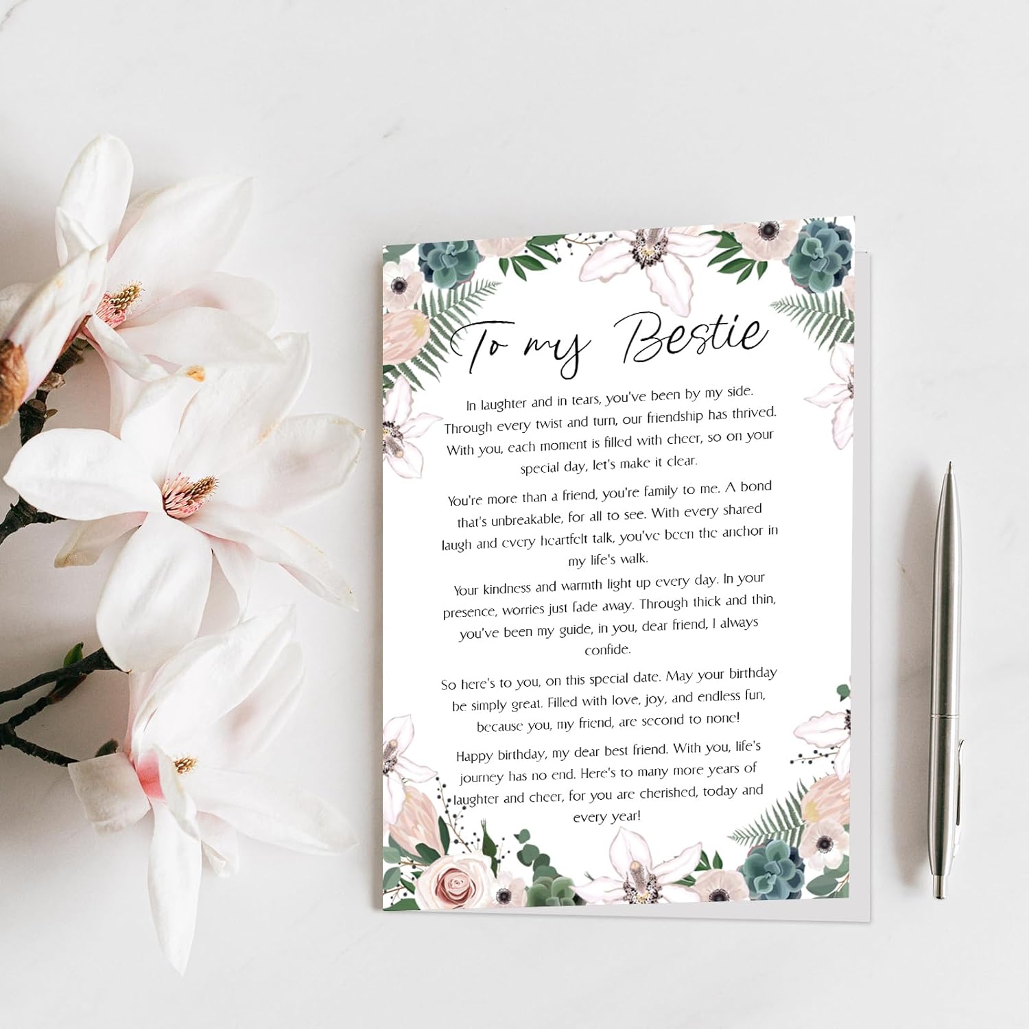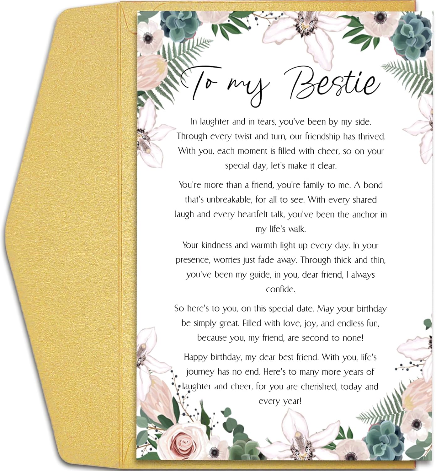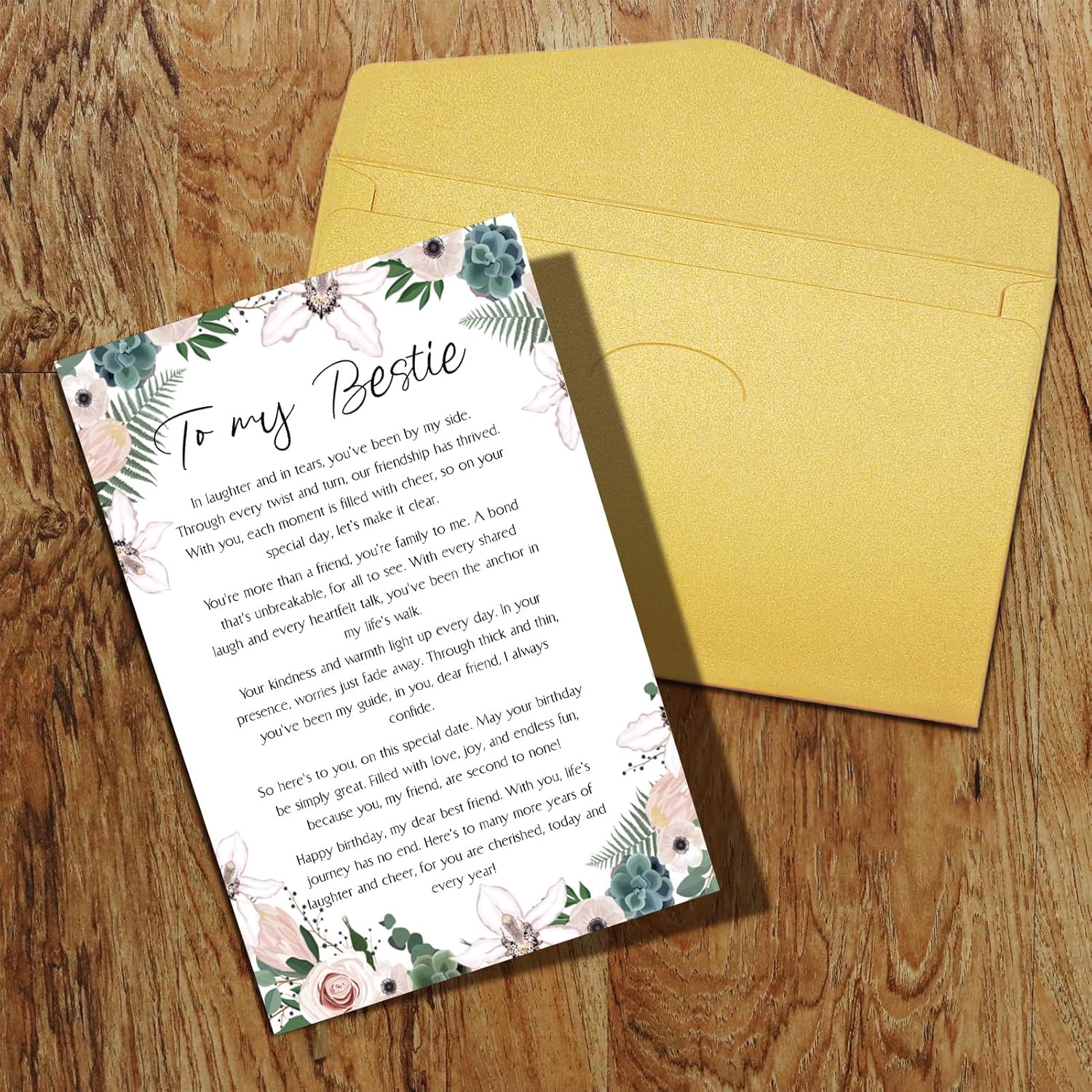 All card are printed on high-quality 300gsm card stock with a matte finish. Great bestie birthday gift for all the laughter, tears, joy, support, and love that make every moment with them unforgettable.