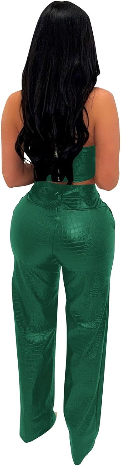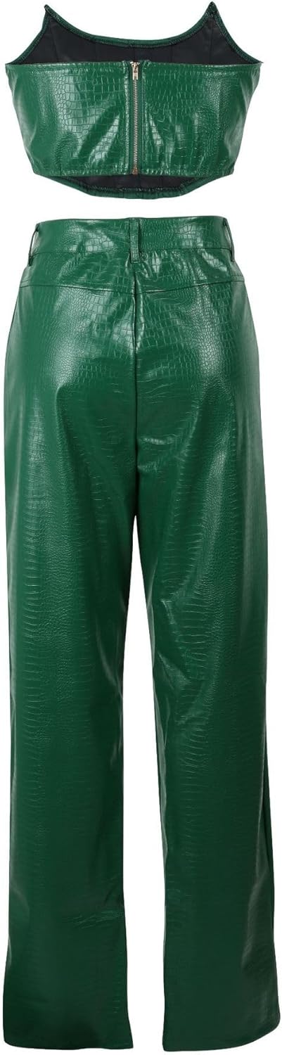 WOKANSE 2 Piece Set Women PU Leather Fashion Streetwear