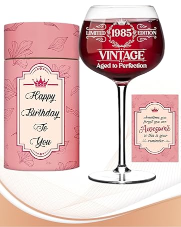 Impress Her at First Sight: Struggling to find the perfect 40th birthday gift for a wine-loving woman? This elegant “Vintage 1985” wine glass is beautifully packaged and ready to celebrate her 40 birthday or anniversary. No need for extra wrapping – just present and impress her with 40th birthday gifts women