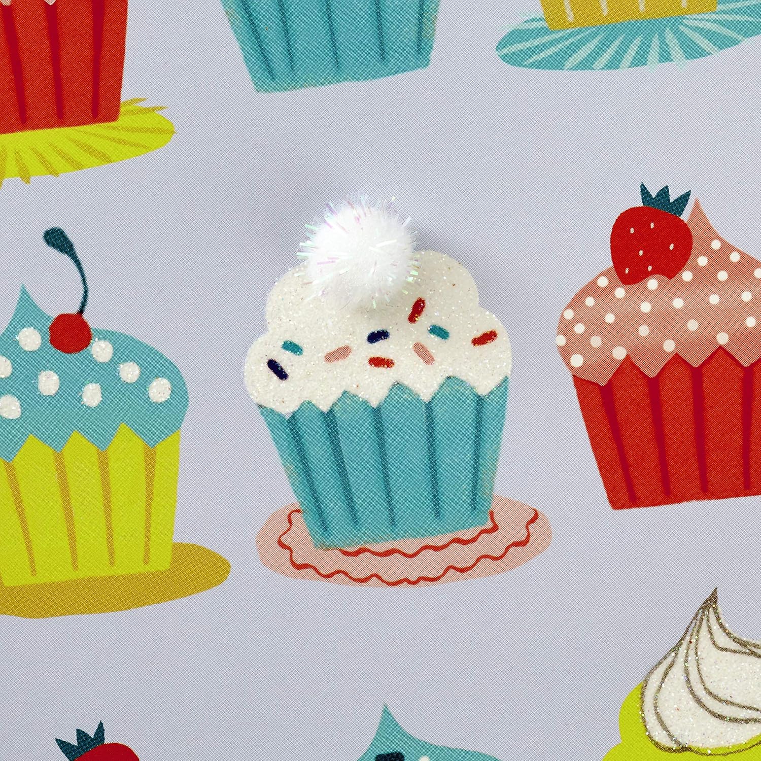Cheerful birthday card set features 12 colorful designs—including balloons, cakes, gifts, a bicycle, balloons, festive lettering, and more—embellished with attachments, glitter, and metallic foil.