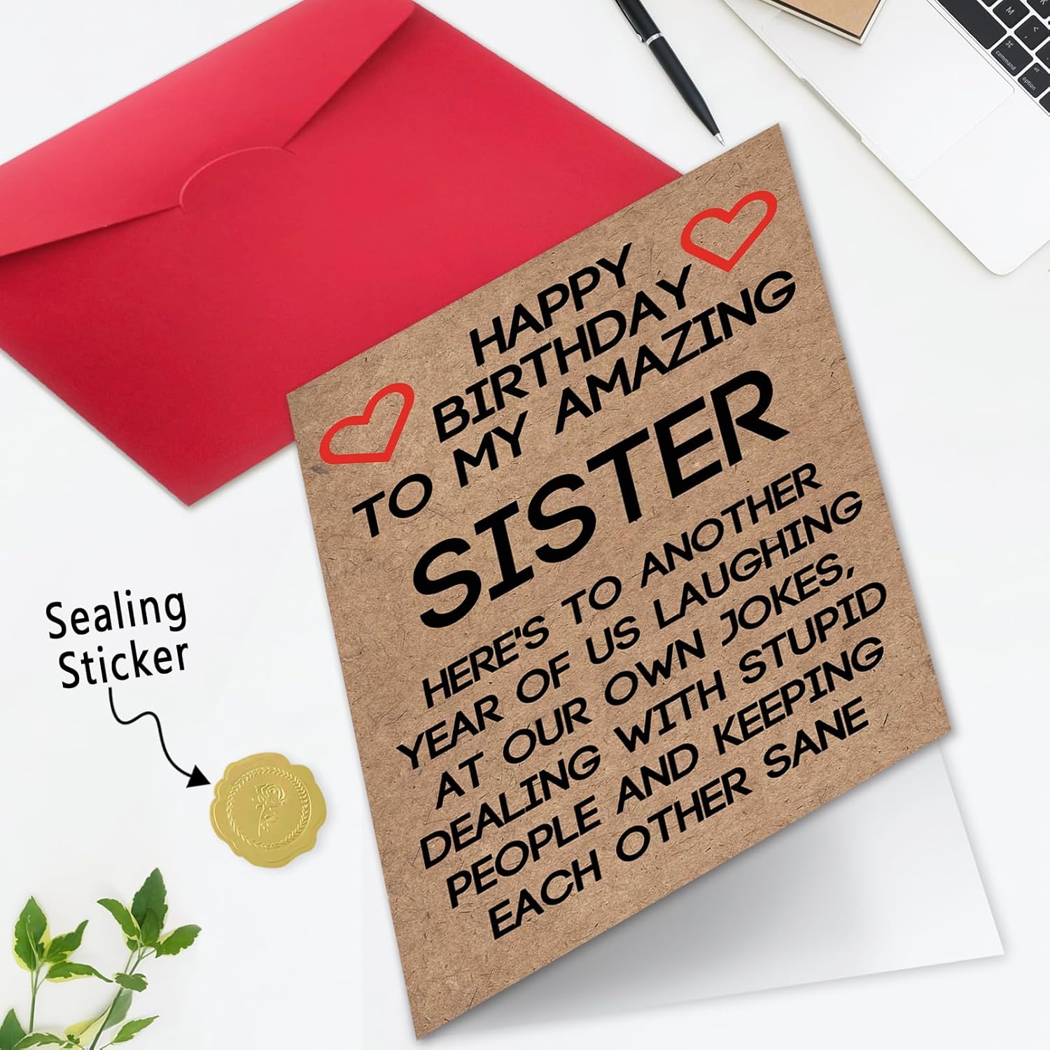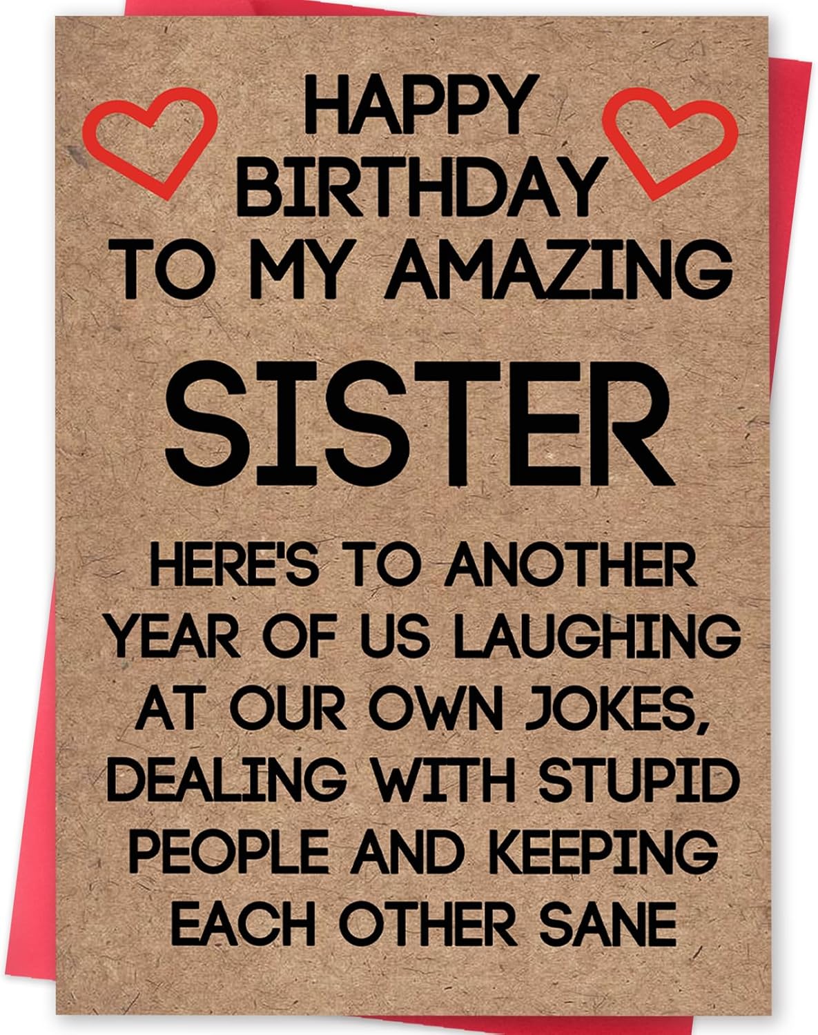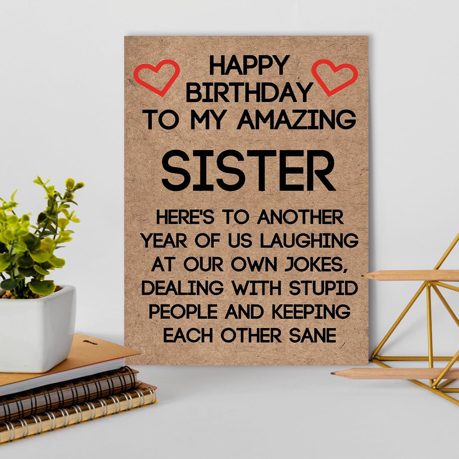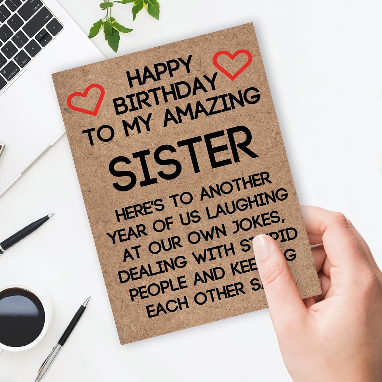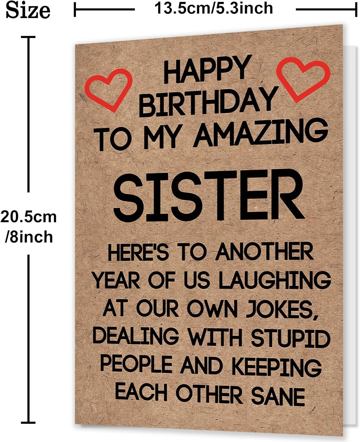 Ziwenhu Humor Sister Birthday Gift Ideas from Brother Cousin, Cute Sister Birthday Card from Borther, Funny Birthday Card for Her
