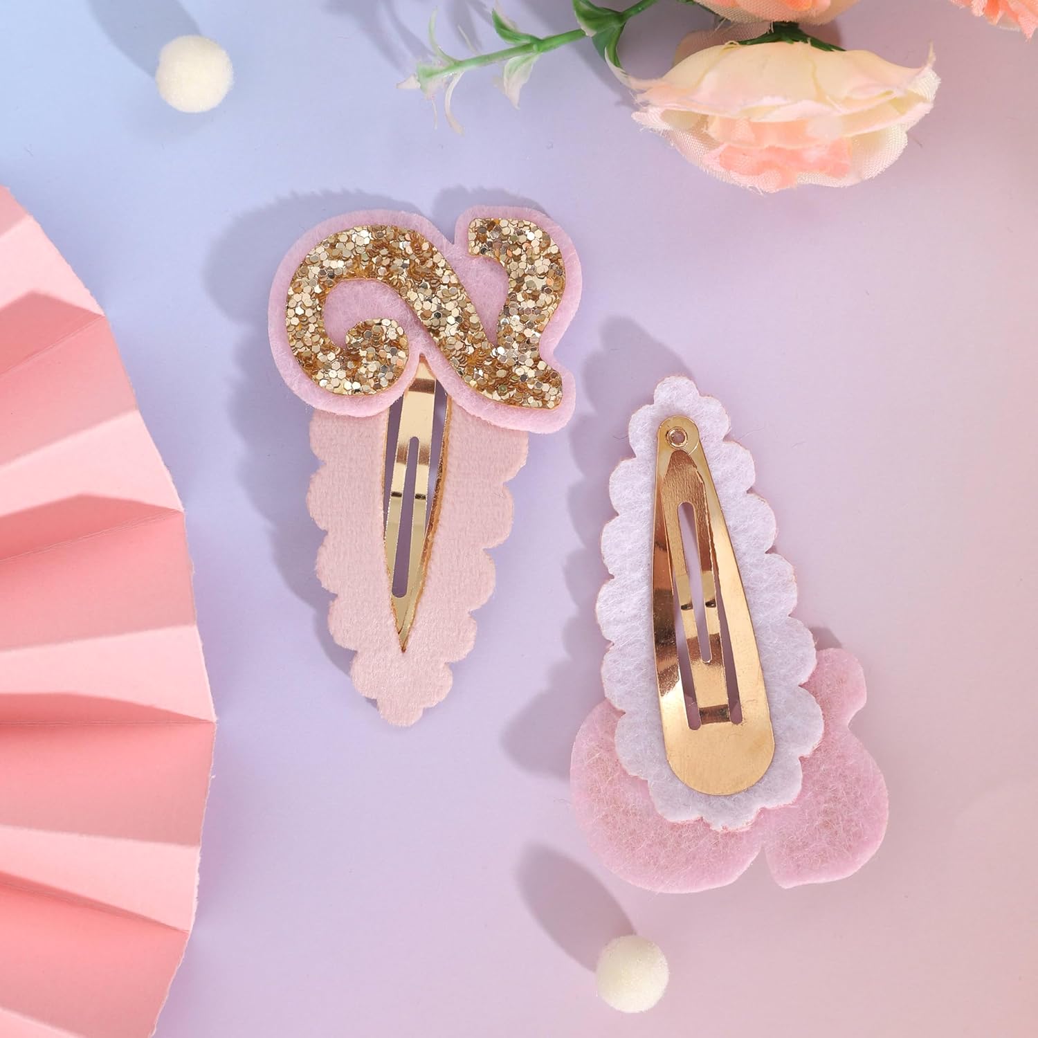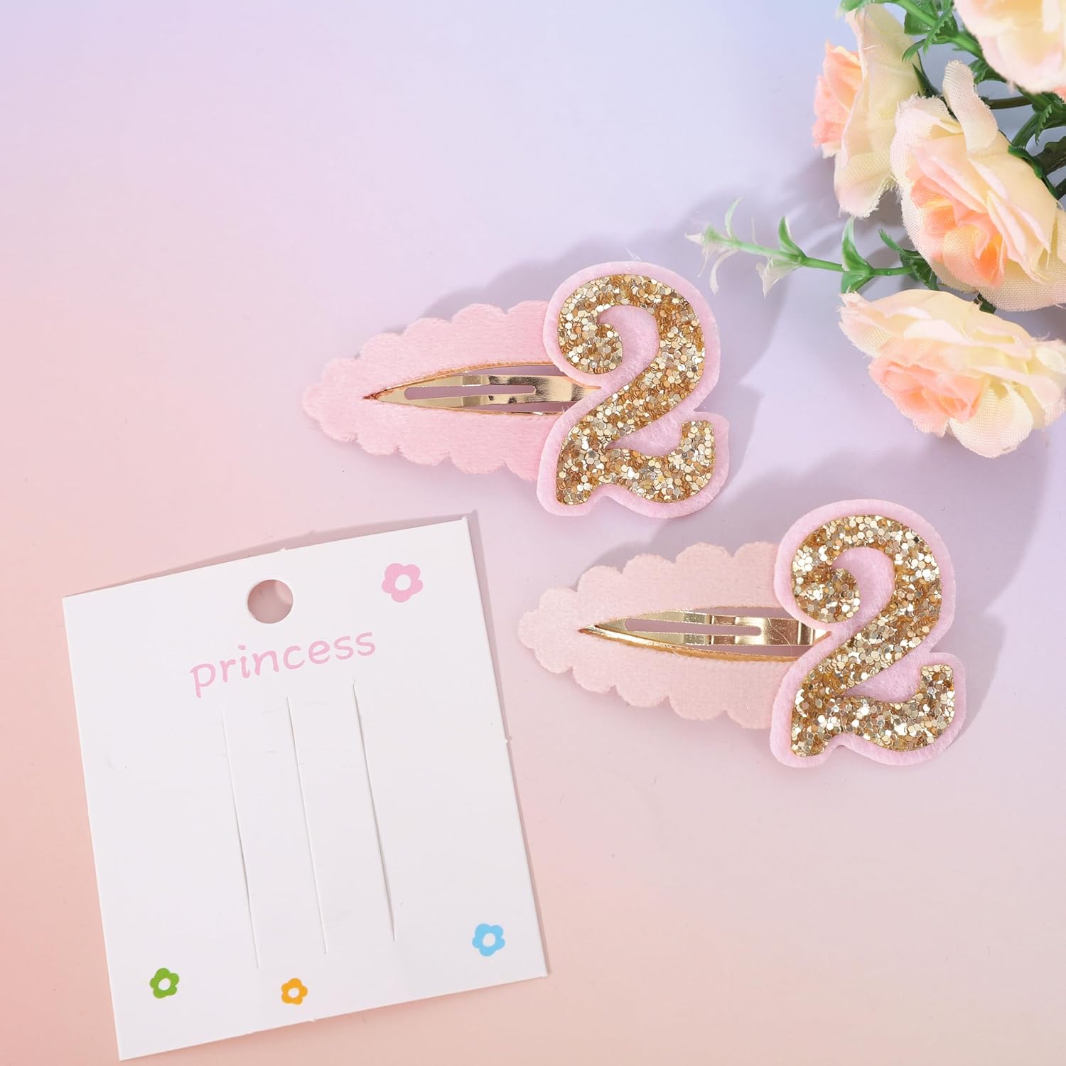 GIRLS 2ND BIRTHDAY HAIR CLIPS – Delicate pink Glitter Hair Clips Are Ideal Decorations For 2ND Birthday Parties, It Will Make Your Little Princess Look Even More Adorable And Add A Unique Atmosphere To Your Celebration.