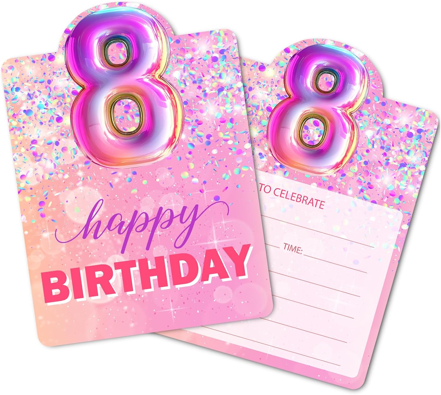 Birthday Invitations, Pink 8th Birthday Invitation Cards with Envelopes (30 PACK), Rainbow Foil Fill-in Invites for Girls Kids Eighth Party Supplies Decorations Favors