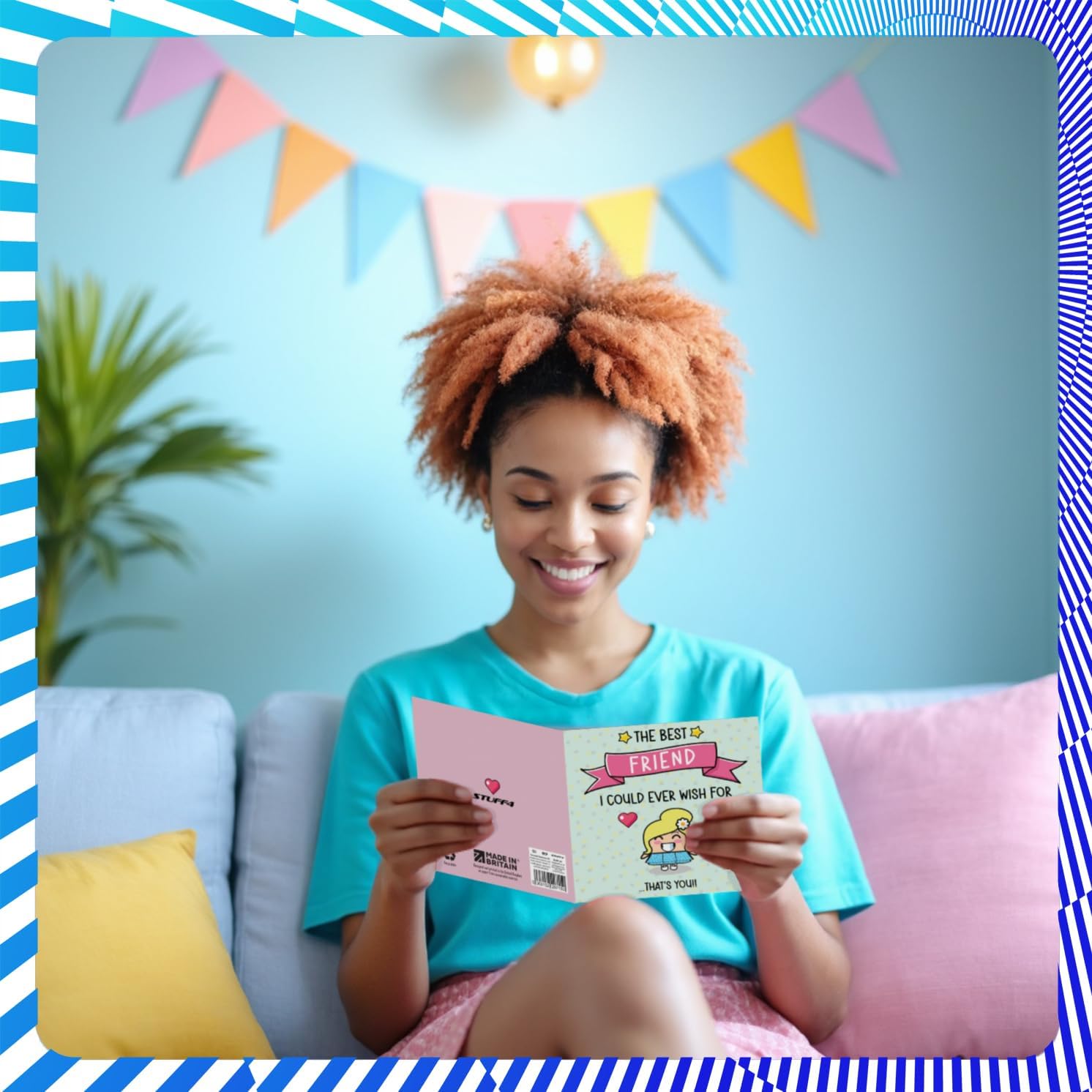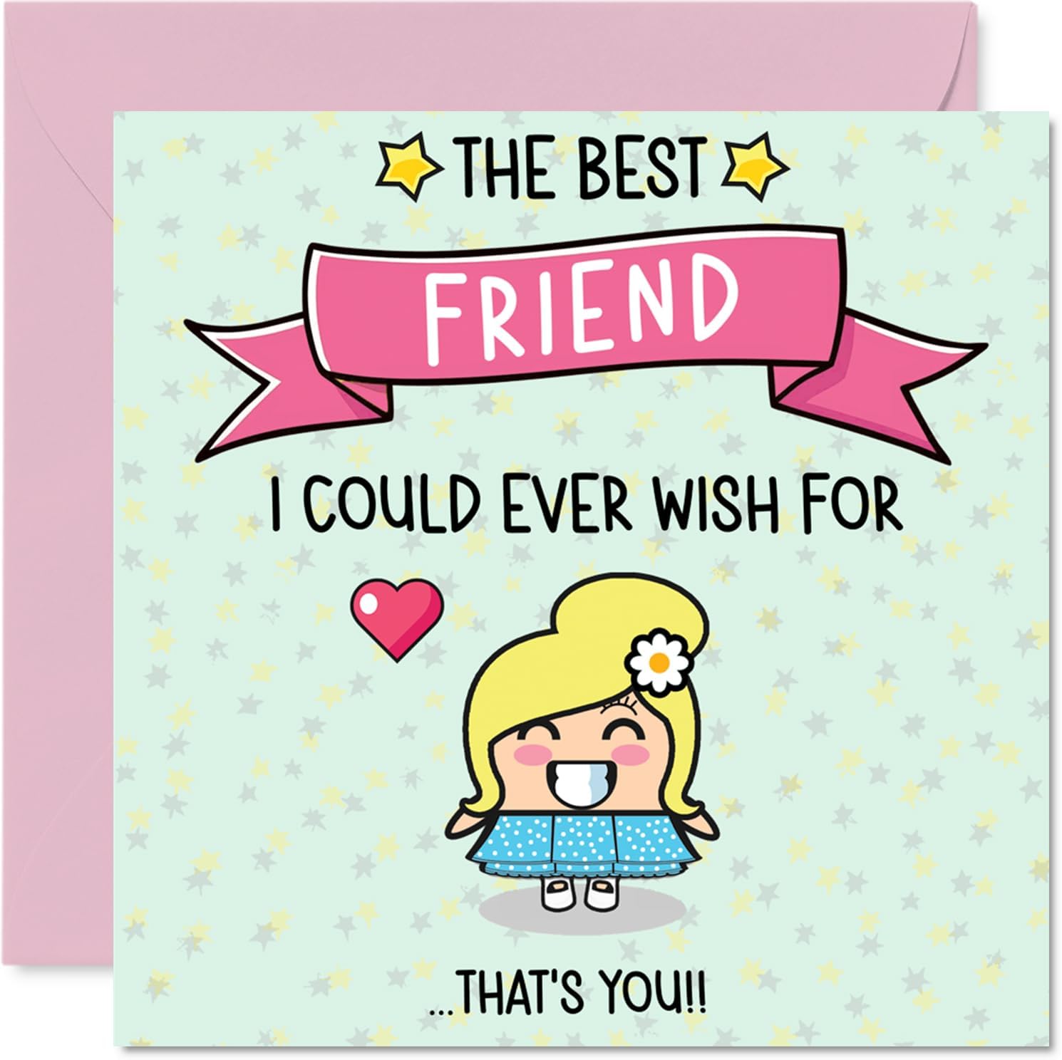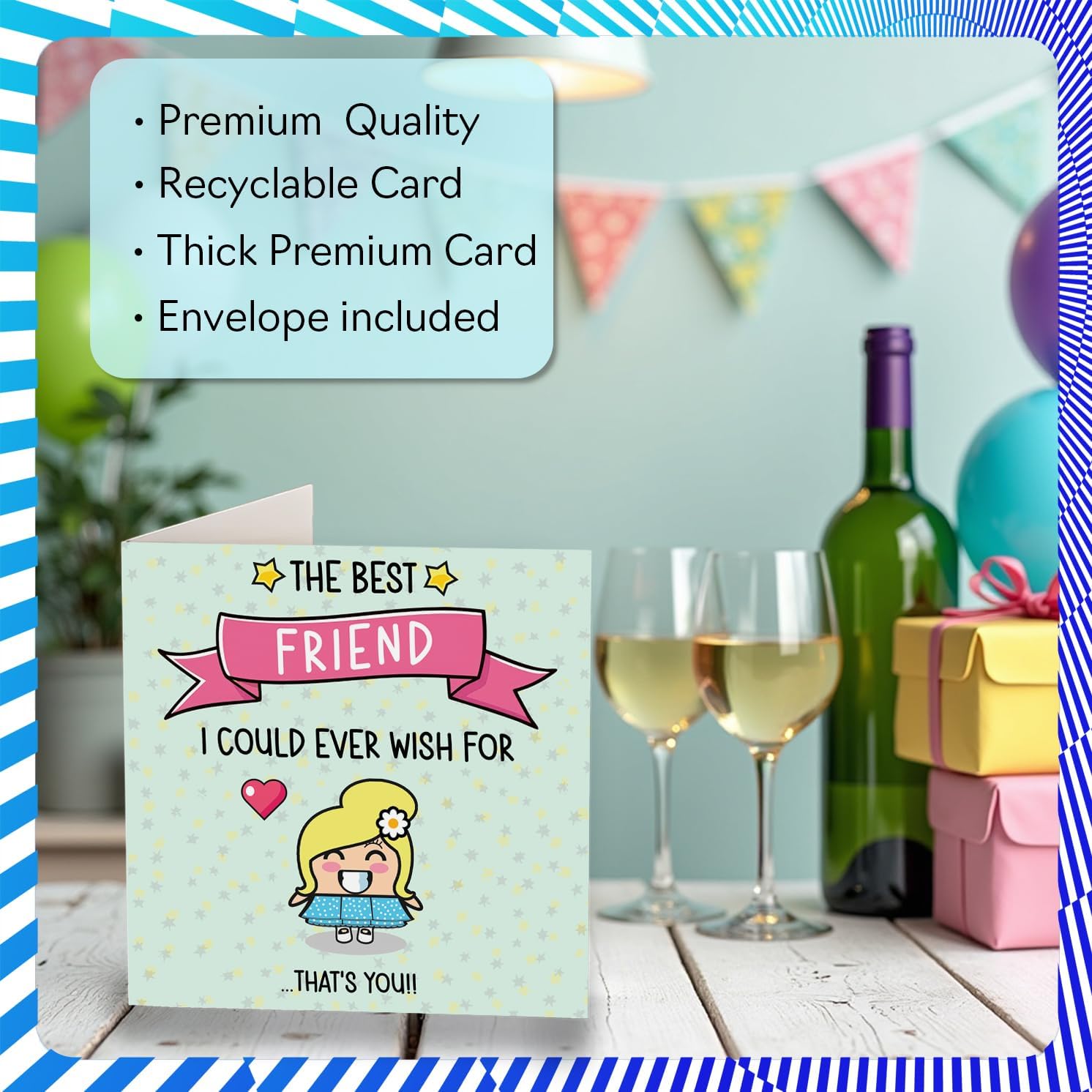MAKE YOUR FRIEND SMILE WITH THIS BEAUTIFUL BIRTHDAY CARD: This exceptional quality Friend birthday card for her shows the design ‘The Best Friend I Could Ever Wish For? That?s You!!’. If you are looking for a beautiful birthday card Friend for her, then then this happy birthday Friend card is bound to make her smile. Not just a birthday card for Friend this could also be a birthday gifts for Friend, Best Friend or Bestie.