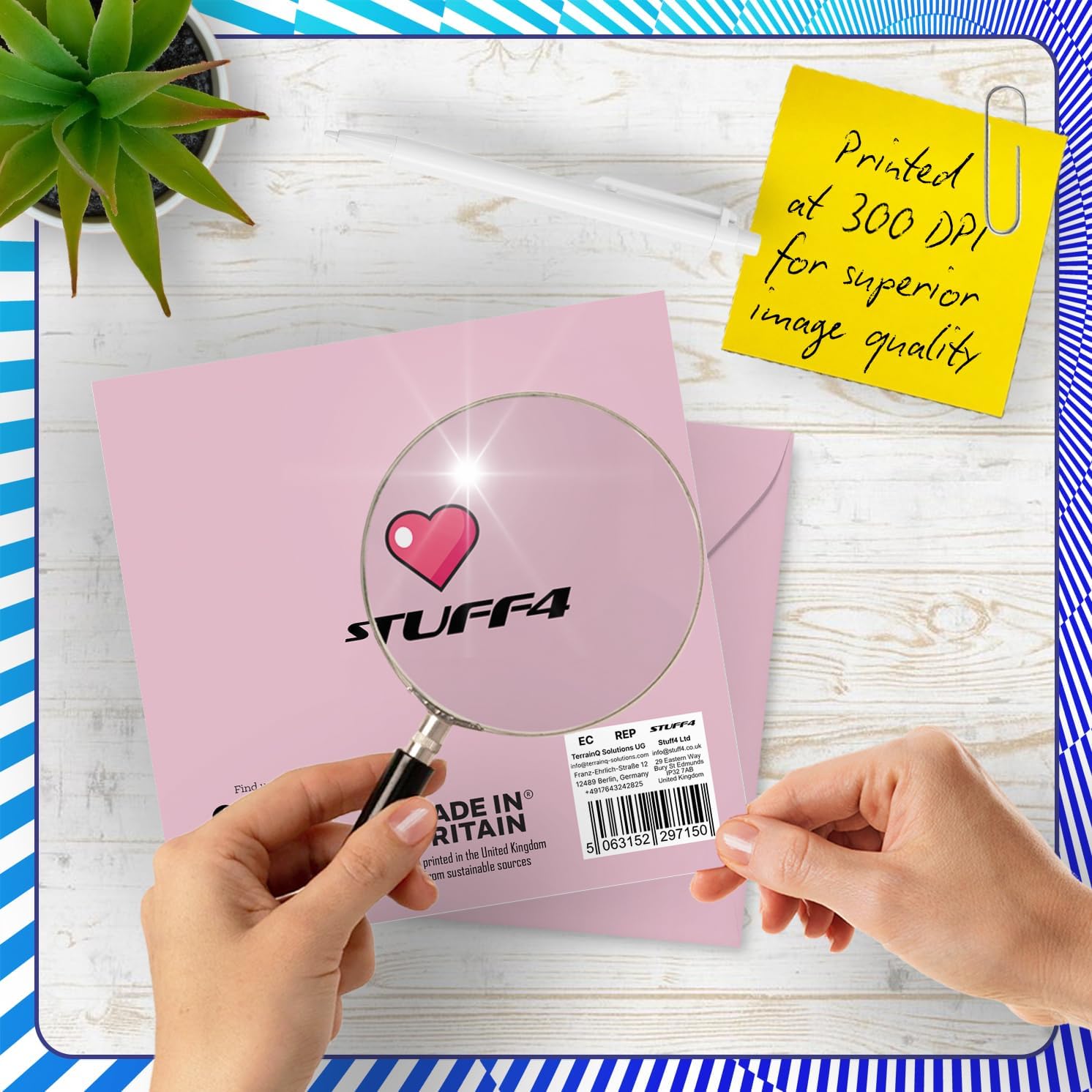 WHAT DO YOU GET: The card is printed on one side and BLANK ON THE INSIDE to allow you to write your very own message. The unique design is printed on a specially sourced and environmentally responsible board. At 360 microns thick the natural white one-sided gloss board has a quality look and feel. Supplied with a coloured gummed envelope to complement the design and ready to be sealed and sent in the post. Great Friend birthday cards, Best Friends birthday card, Best Friend birthday card.