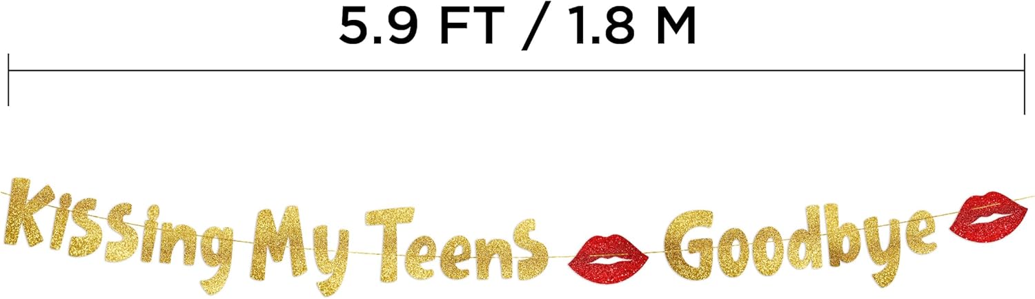 Kissing My Teens Goodbye Gold Glitter Banner- Happy 20th Birthday Party Decorations and Supplies