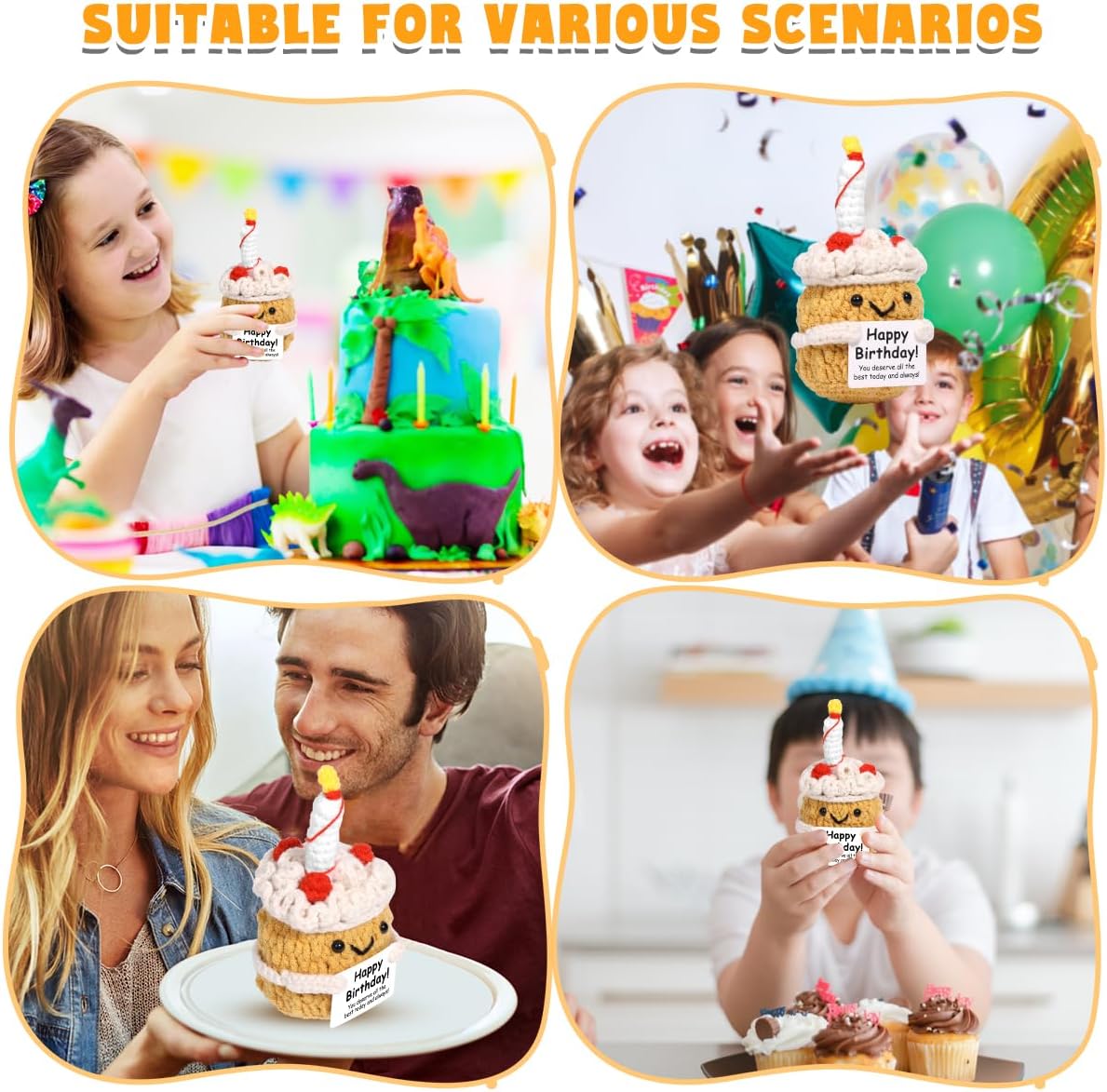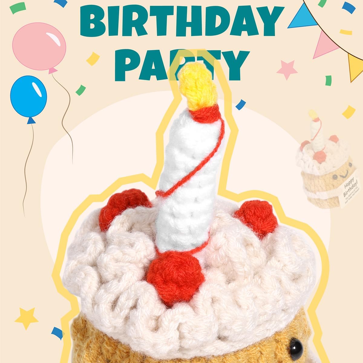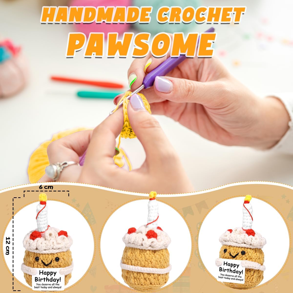 【An Uplifting Birthday Gifts】-Gift this cheerful positive affirmation Cake to those facing difficult times or overcoming personal challenges. The positive message on the card, “Happy Birthday,You deserve all the best today and always” provides encouragement and support. Whether it’s a stress relief crochet gift for a colleague or a friend navigating a tough phase, this tiny positive Cake will remind them to stay strong.