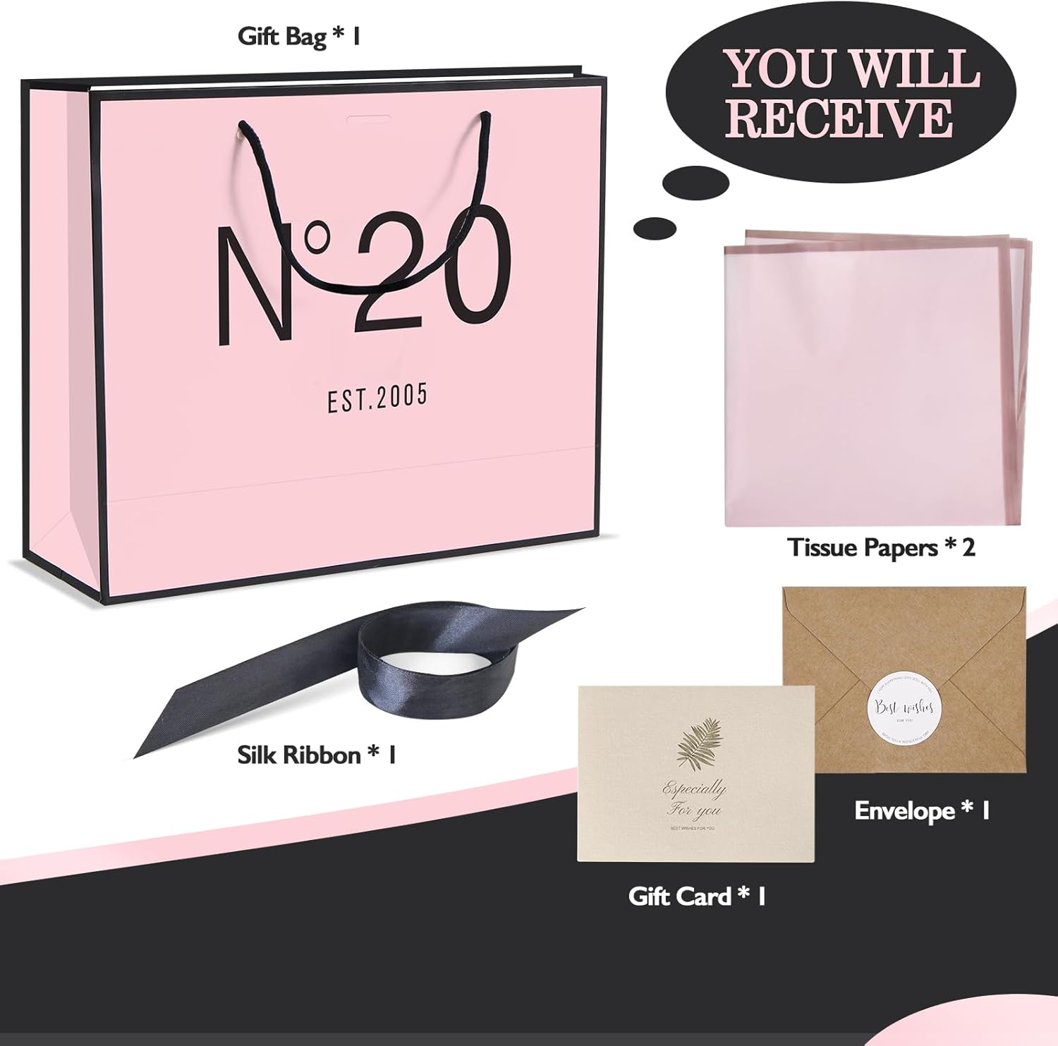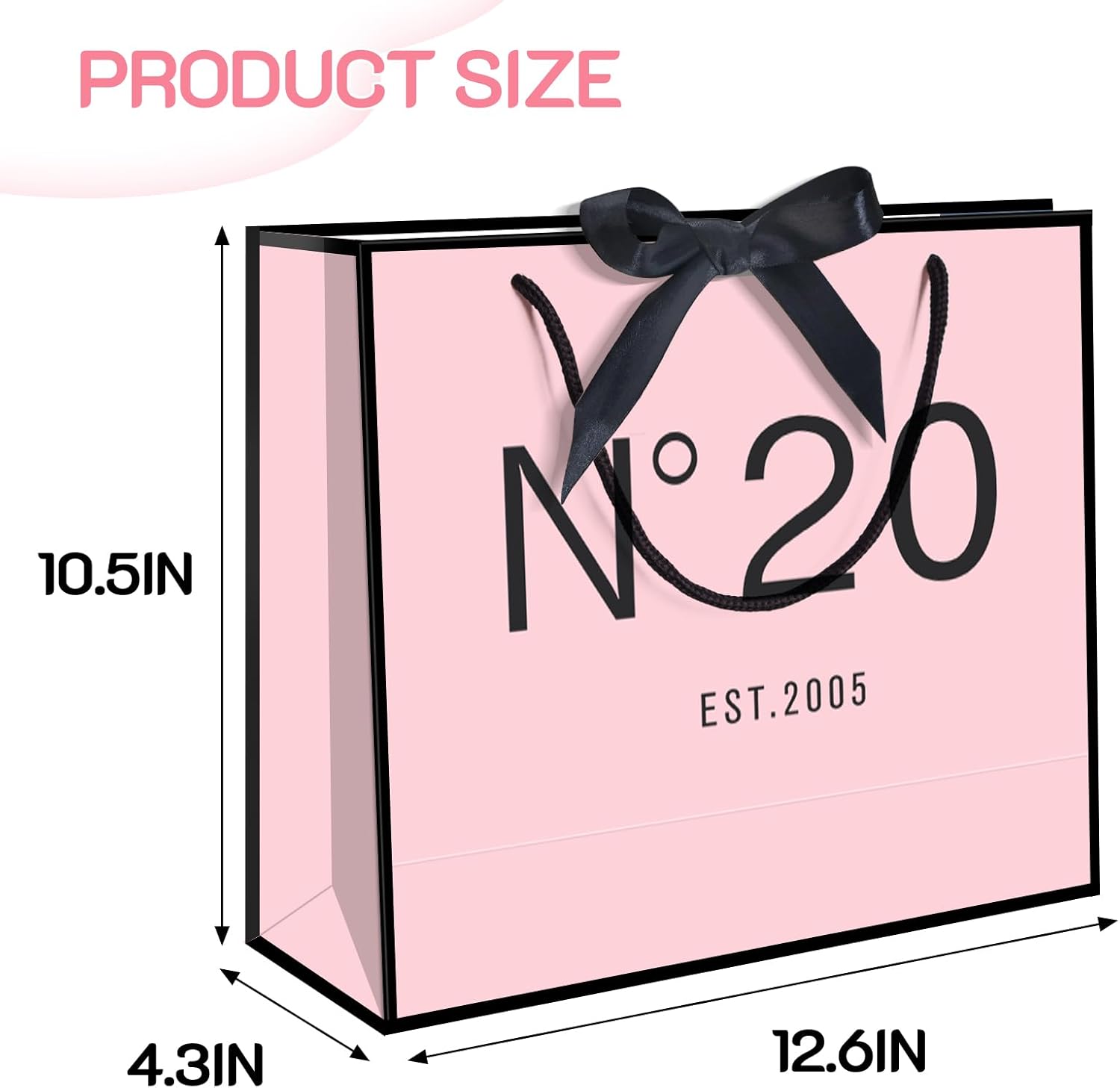 20th Birthday Gift Bag with Card Envelope Sticker Bow Ribbon and Tissue papers for Women Girls N°20 EST.2005 Design with Handles,for Celebrating 2005 20th Birthday Anniversary 13″ (EST.2005 20th)
