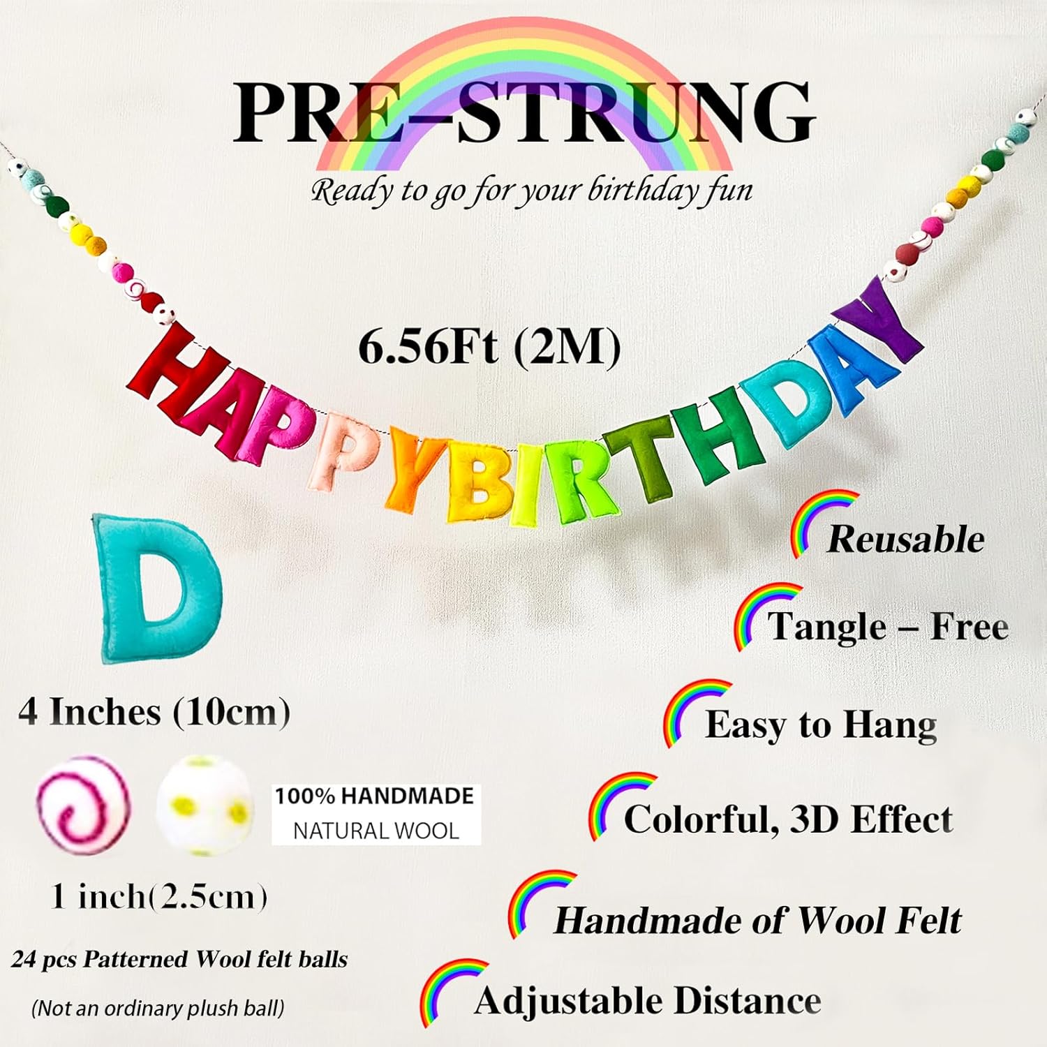 【PERFECT BIRTHDAY DECORATIONS】: Our Happy Birthday garland is made from wool felt that has been stuffed and sewn for a 3D effect. Add a stunning backdrop to your celebration. Our fun and colorful Happy Birthday banner is very suitable for any colorful party theme. It brings warm Birthday wishes to anyone at any age!