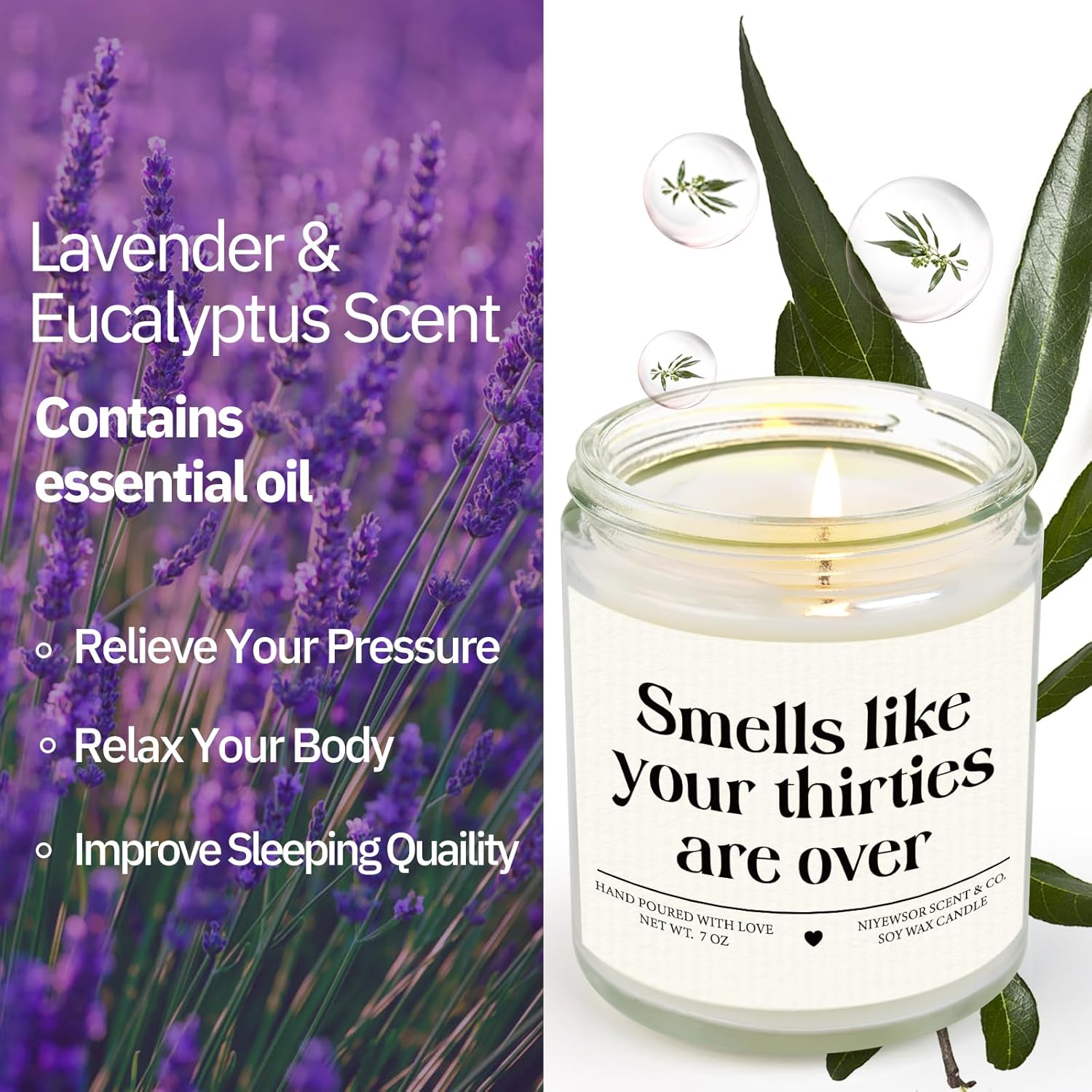 【Superior to Flowers & Cards】- It’s not always easy to find a birthday gift that’s both fun and useful, and this candle perfectly meets your expectations. More meaningful and enduring than flowers that eventually fade, and 40th birthday cards destined for the bin. It releases a soothing lavender and eucalyptus scent, improving sleep and relieving stress.
