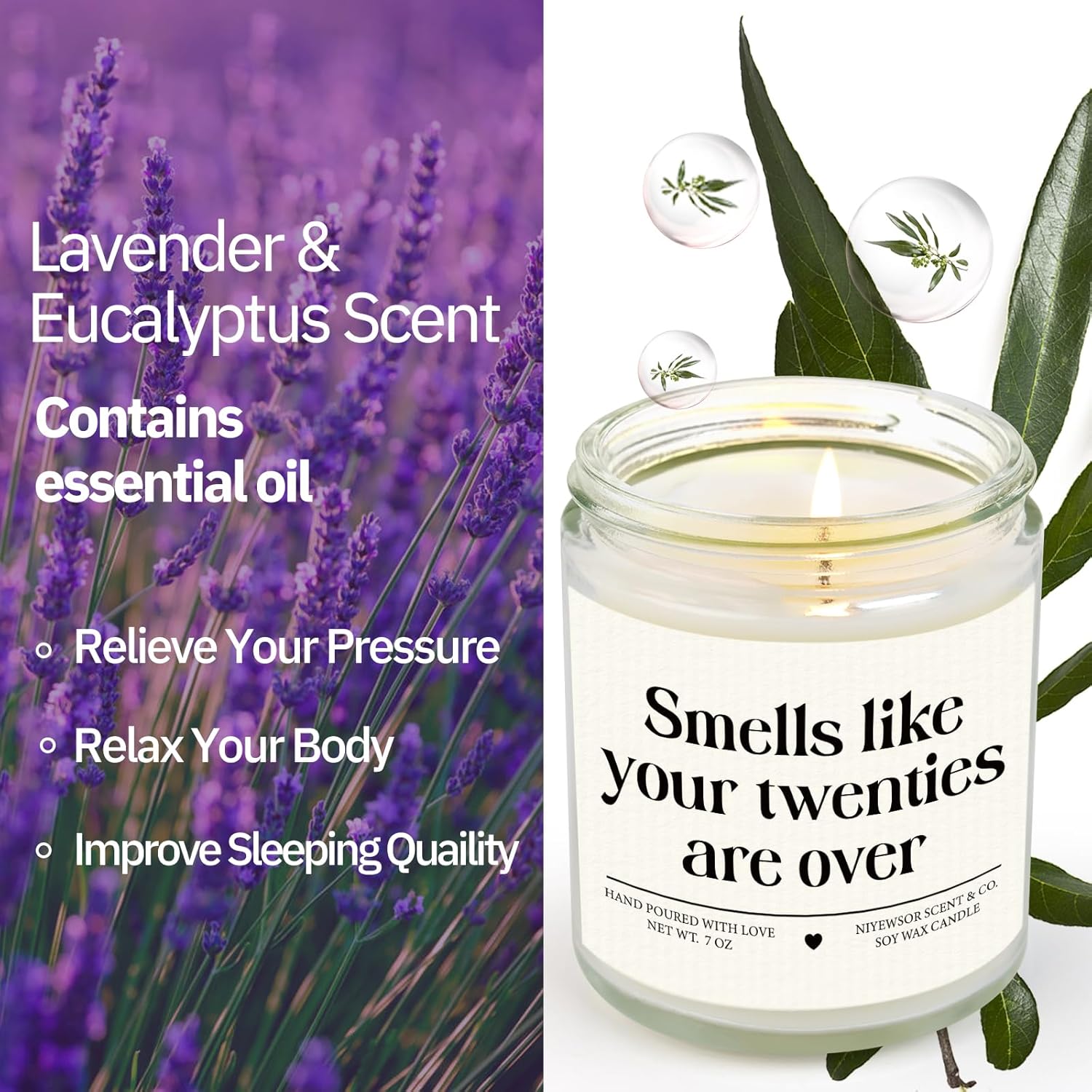 【Superior to Flowers & Cards】- It’s not always easy to find a birthday gift that’s both fun and useful, and this candle perfectly meets your expectations. More meaningful and enduring than flowers that eventually fade, and 30th birthday cards destined for the bin. It releases a soothing lavender and eucalyptus scent, improving sleep and relieving stress.