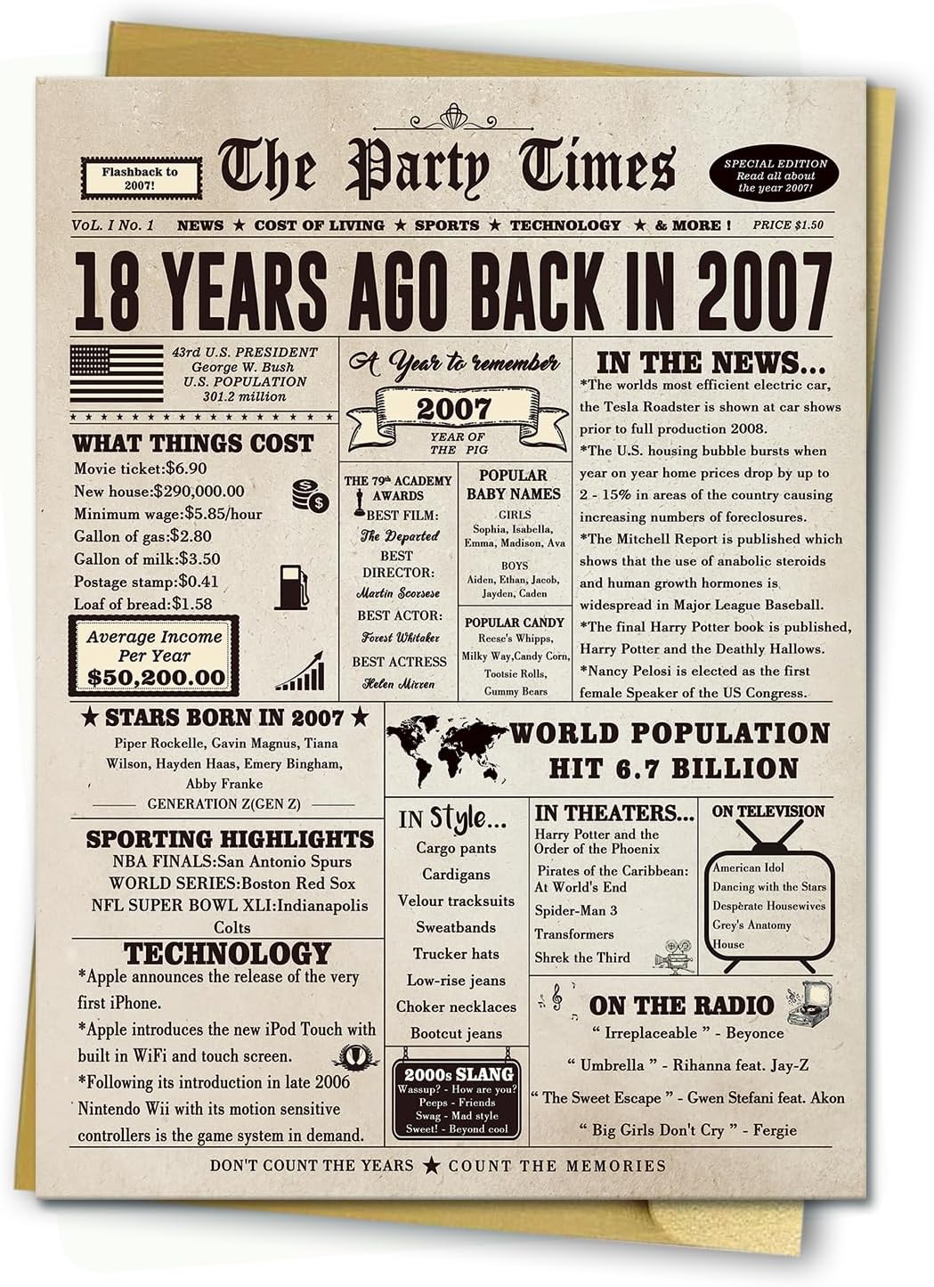 18th Birthday Gifts– Find interesting 18th birthday cards for your children. The cards contain some specific events which can help you review interesting events with family and friends.