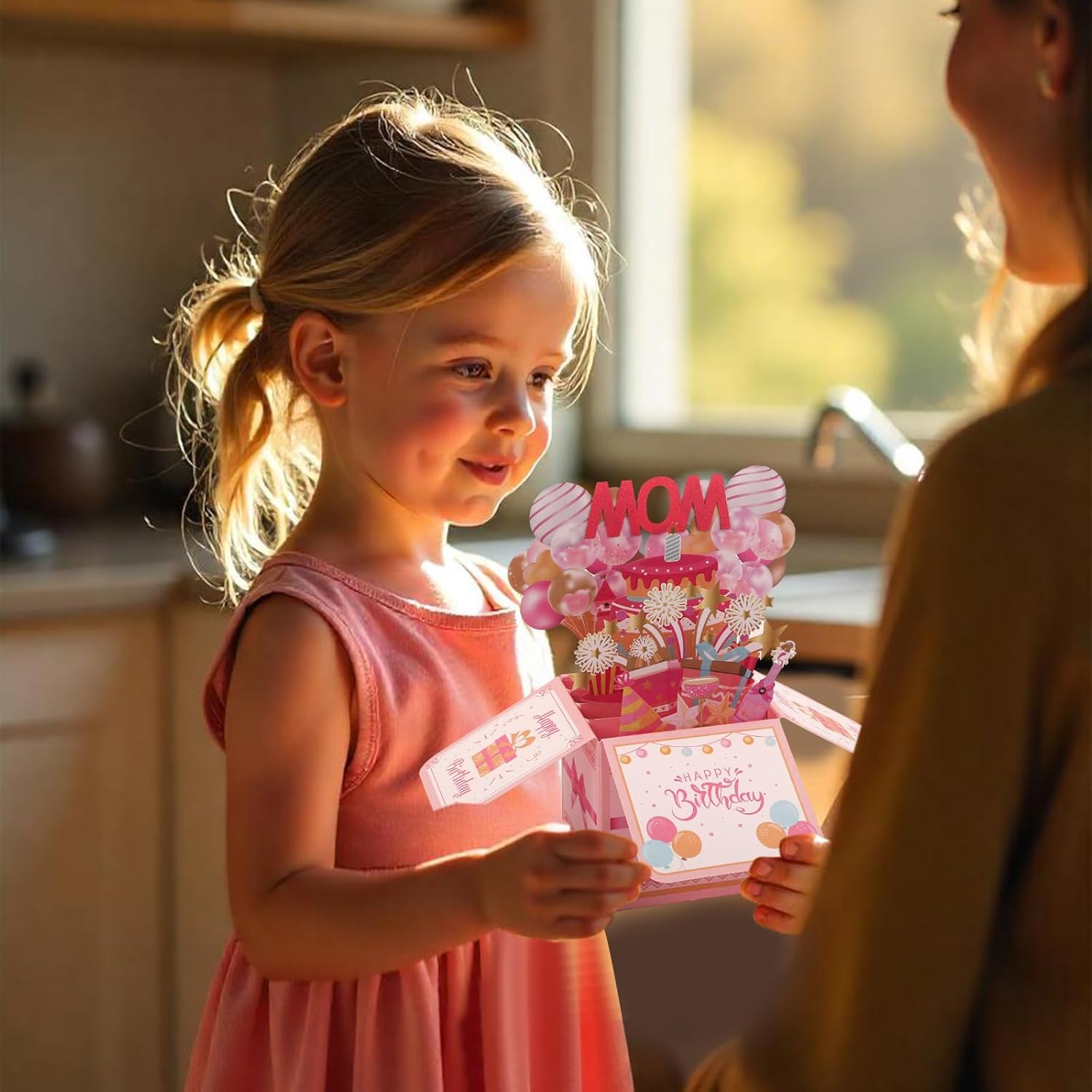 Delicate Design: Our birthday cards are designed in a pop-up style, featuring vibrant colors and adorable elements like balloons, fireworks, and more. When opened, the word “MOM” will appear, adding a special touch to your celebration.