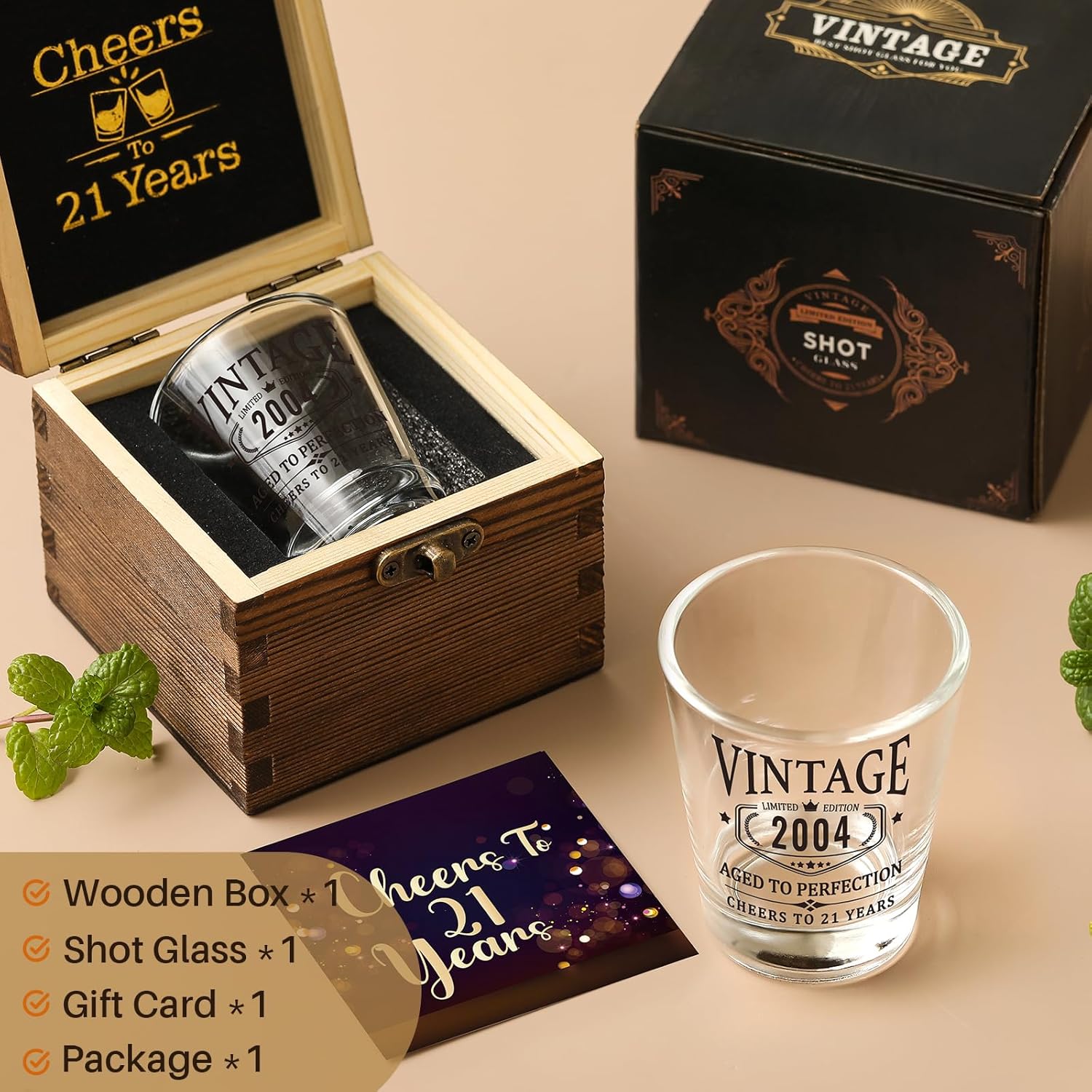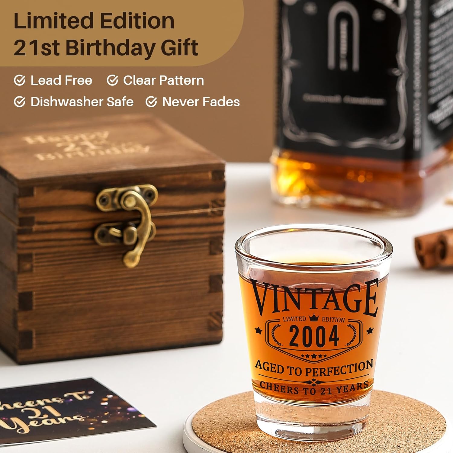Unique Limited Edition Logo – Allr parts are printed with pattern (refer to the images). Especially the milestone shot glass cup, the unique ‘2004’ sign represents the 21st birthday or 21st anniversary day. Great gift ideas for your friends, boyfriend, classmate, brother, son or any other male or female who is 21 or turning 21 years old.