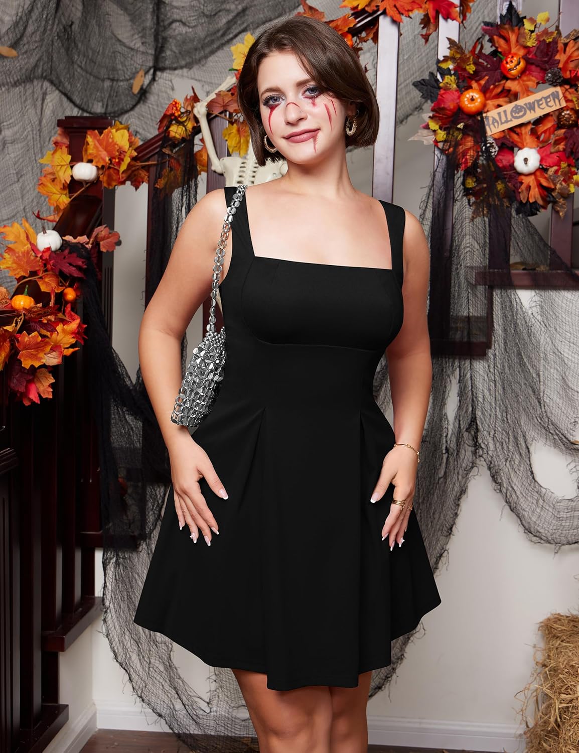 YMDUCH Women’s Sexy Sleeveless Square Neck Bow Tie A-line Mini Party Club Dress