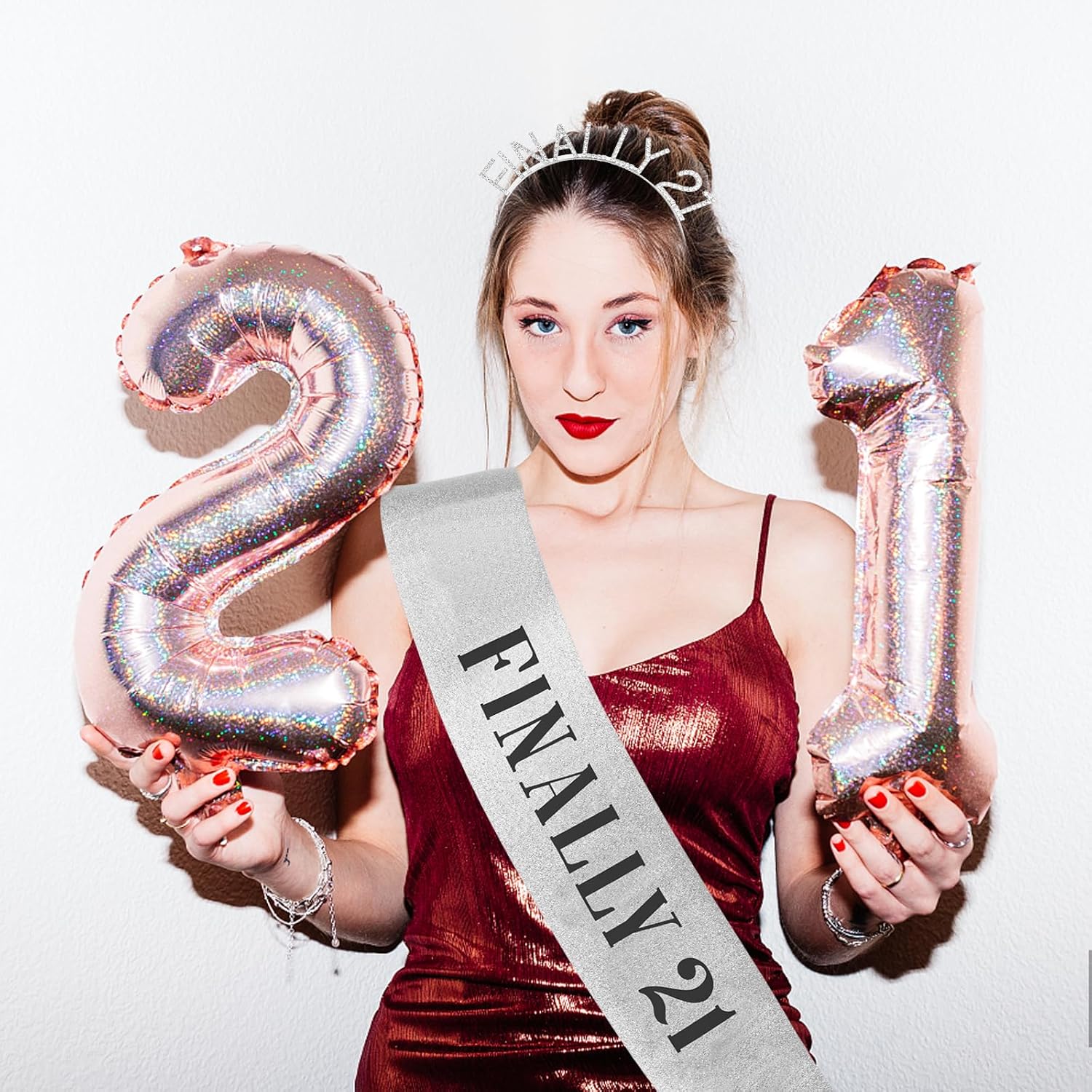 Rhinestone FINALLY 21 birthday headband: Each Semato birthday crown/headband is inlaid with good quality rhinestones and this makes it shine in the light. Add this 21st birthday headband to your birthday party and you’ll be the center of attention