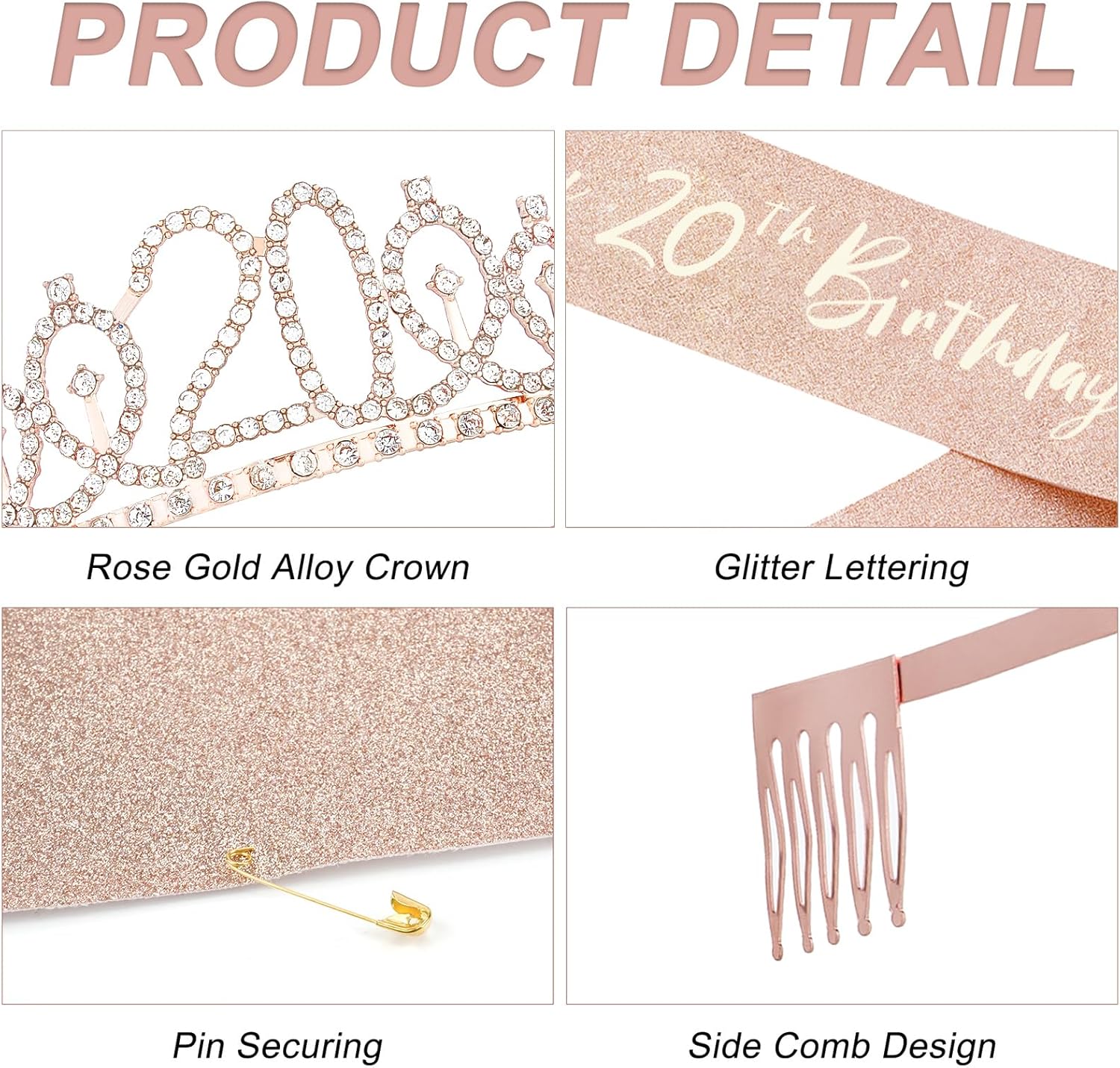 20th Birthday Crown and Sash: Our sash features the phrase “It’s my 20 Birthday” crafted from the finest rose golden shimmer material and hand-pressed foil. The crown is made of hard alloy and high-quality water diamonds, resembling diamonds in appearance, ensuring long-lasting sparkle and brilliance. There is a comb design on both sides of the end of the crown, so the crown is not easy to fall off, and will fix your beauty all the time.