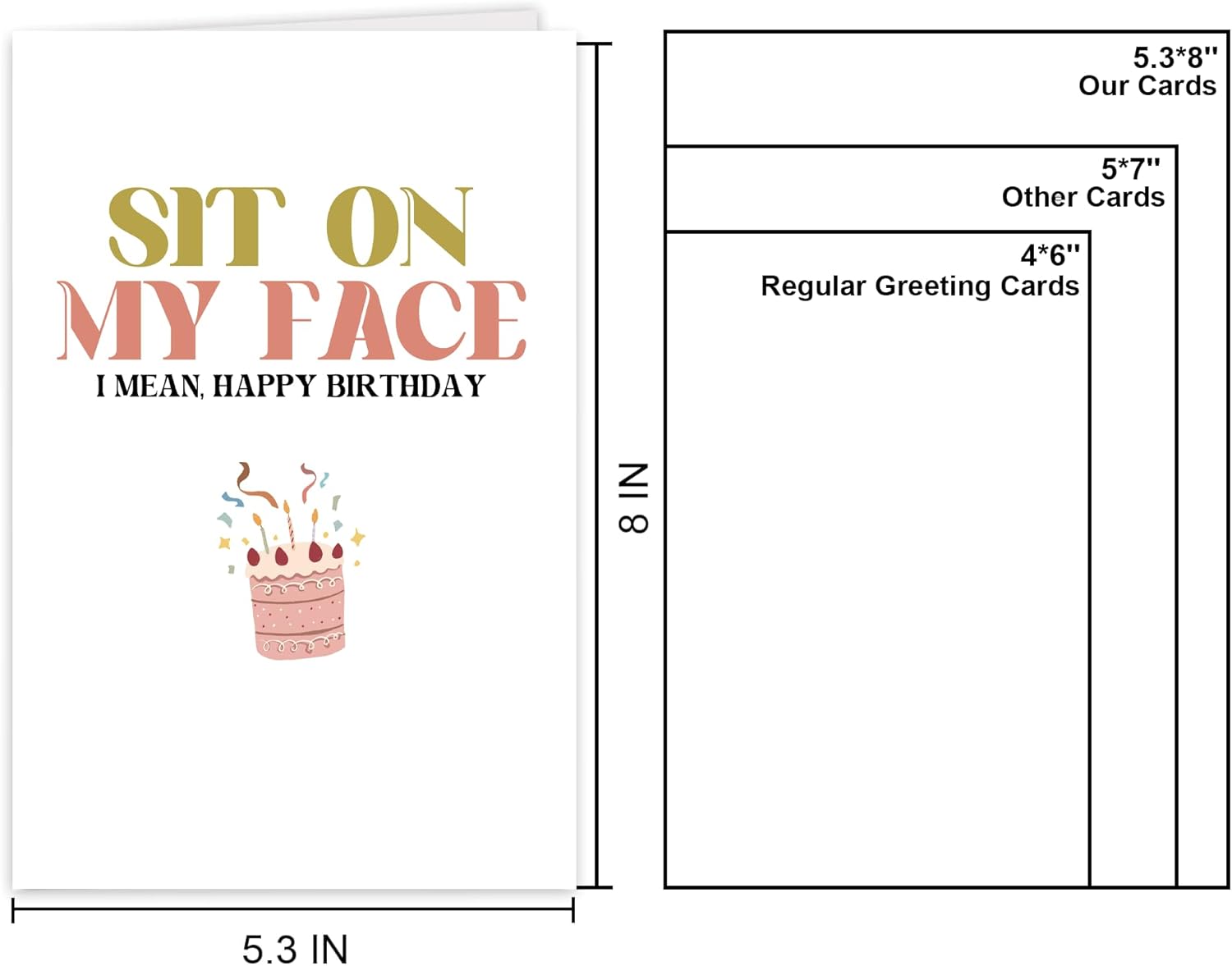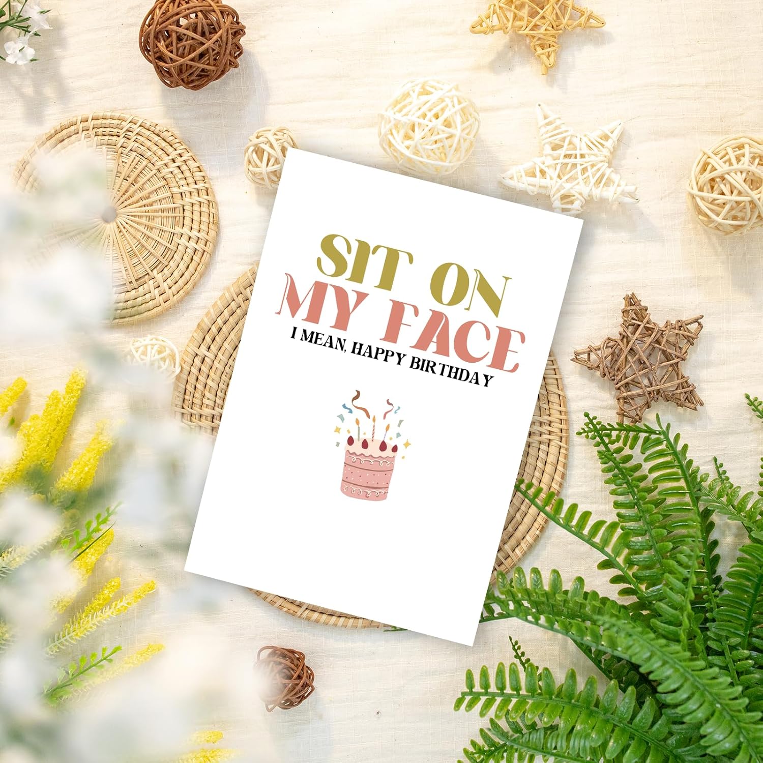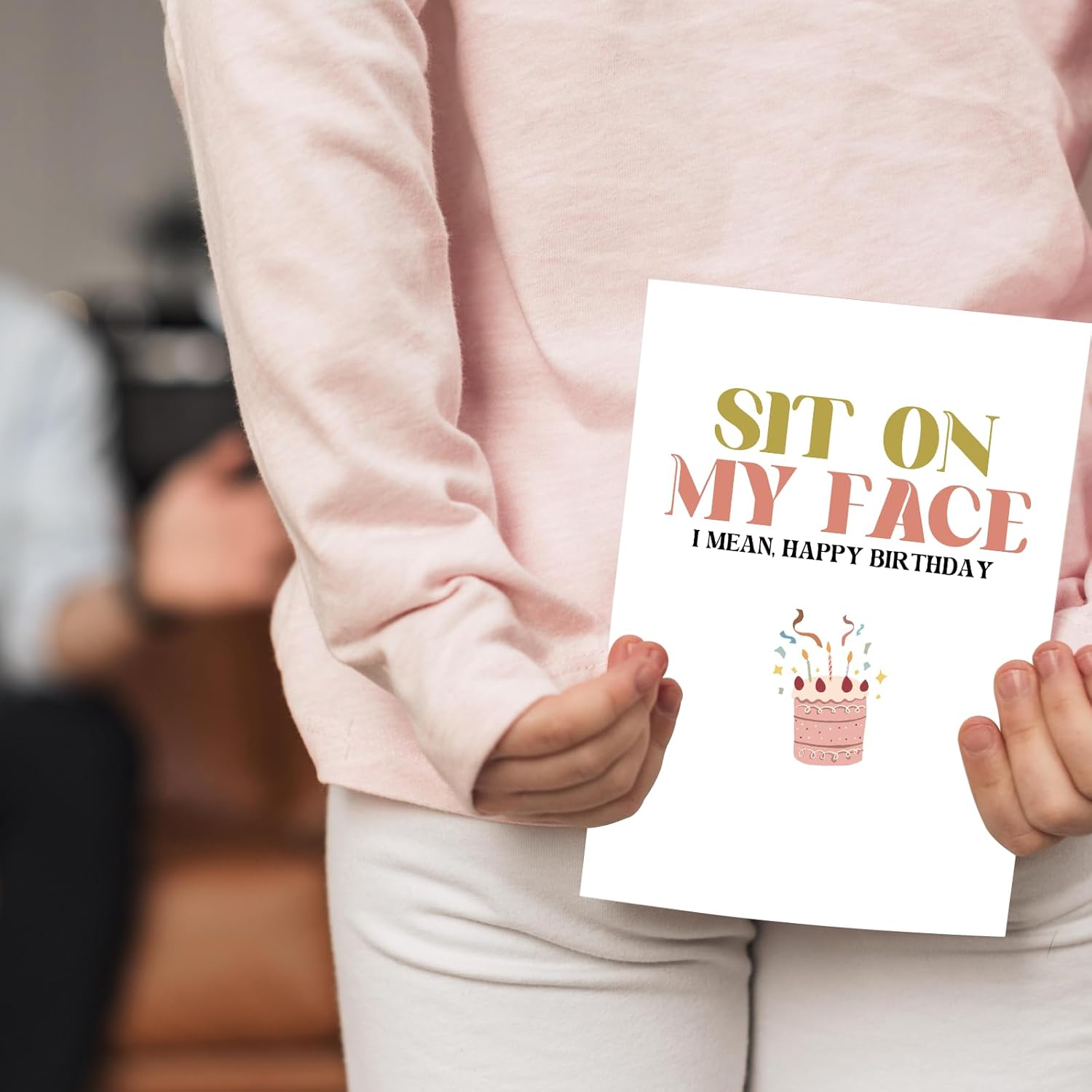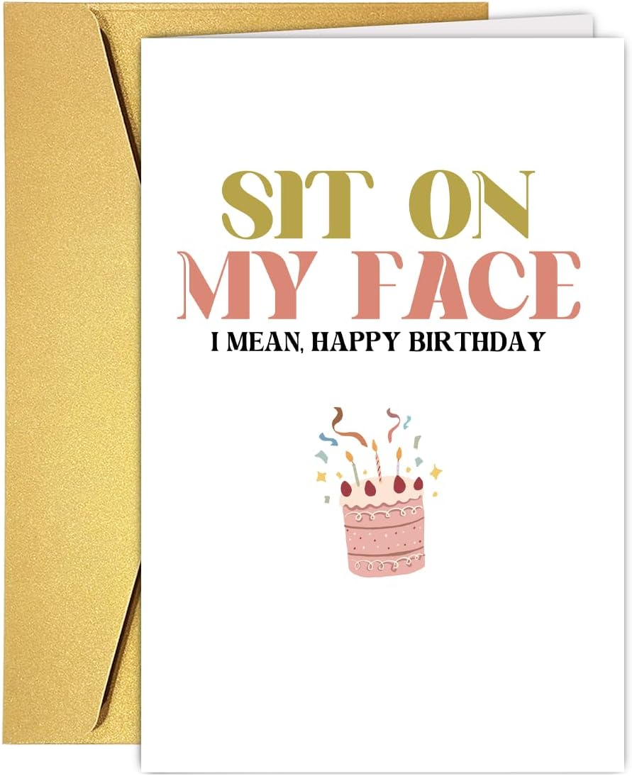 Naughty birthday card for wife girlfriend: A naughty birthday gift for her. Featuring a cheeky caption that reads, “Sit on my face, I mean Happy Birthday,” this card is the ultimate choice for those who appreciate playful and risqué humor.