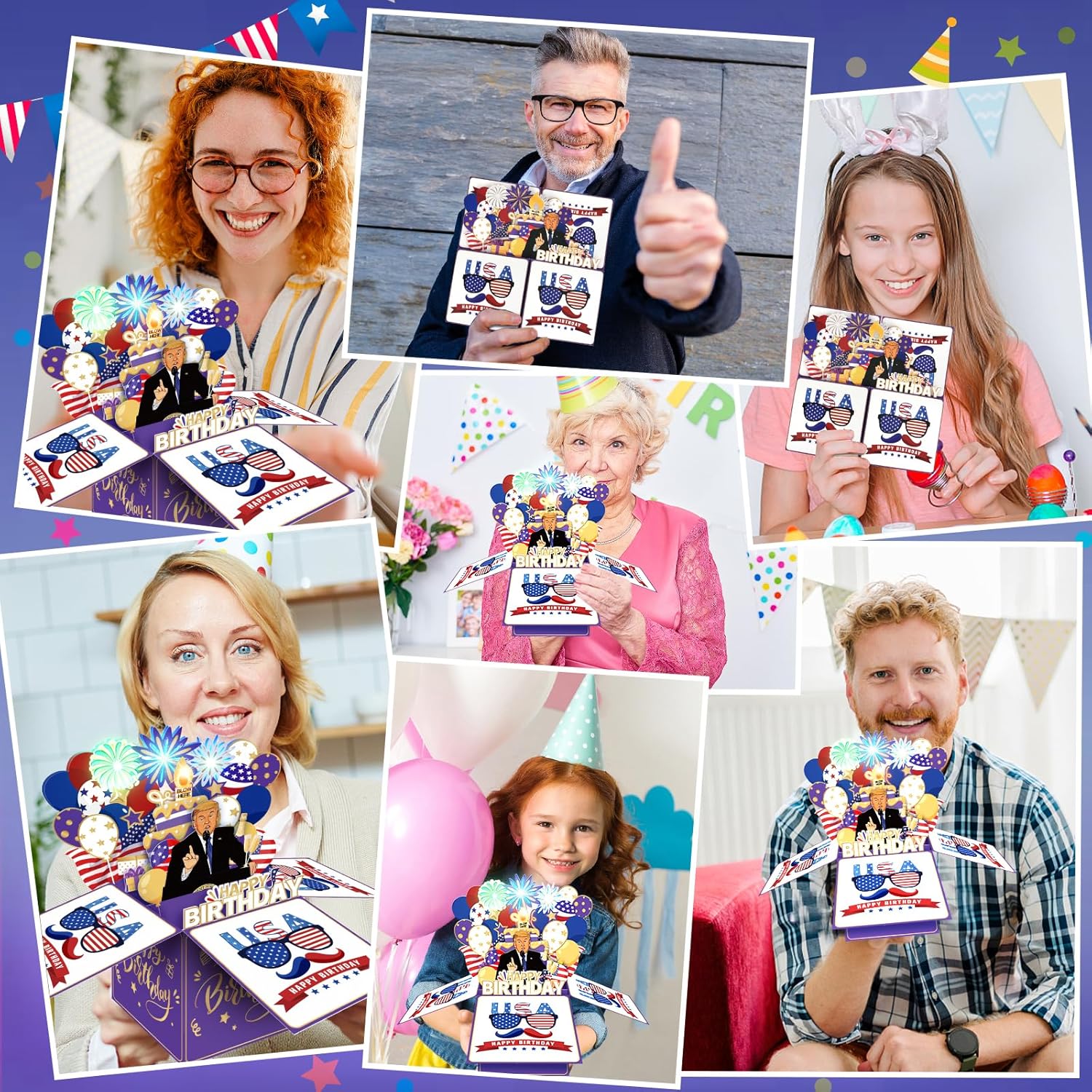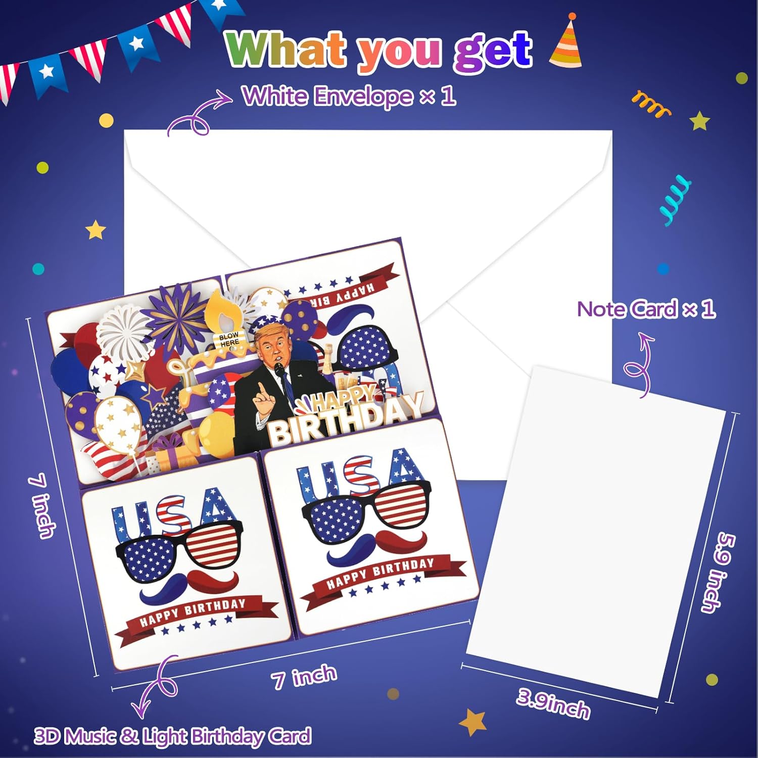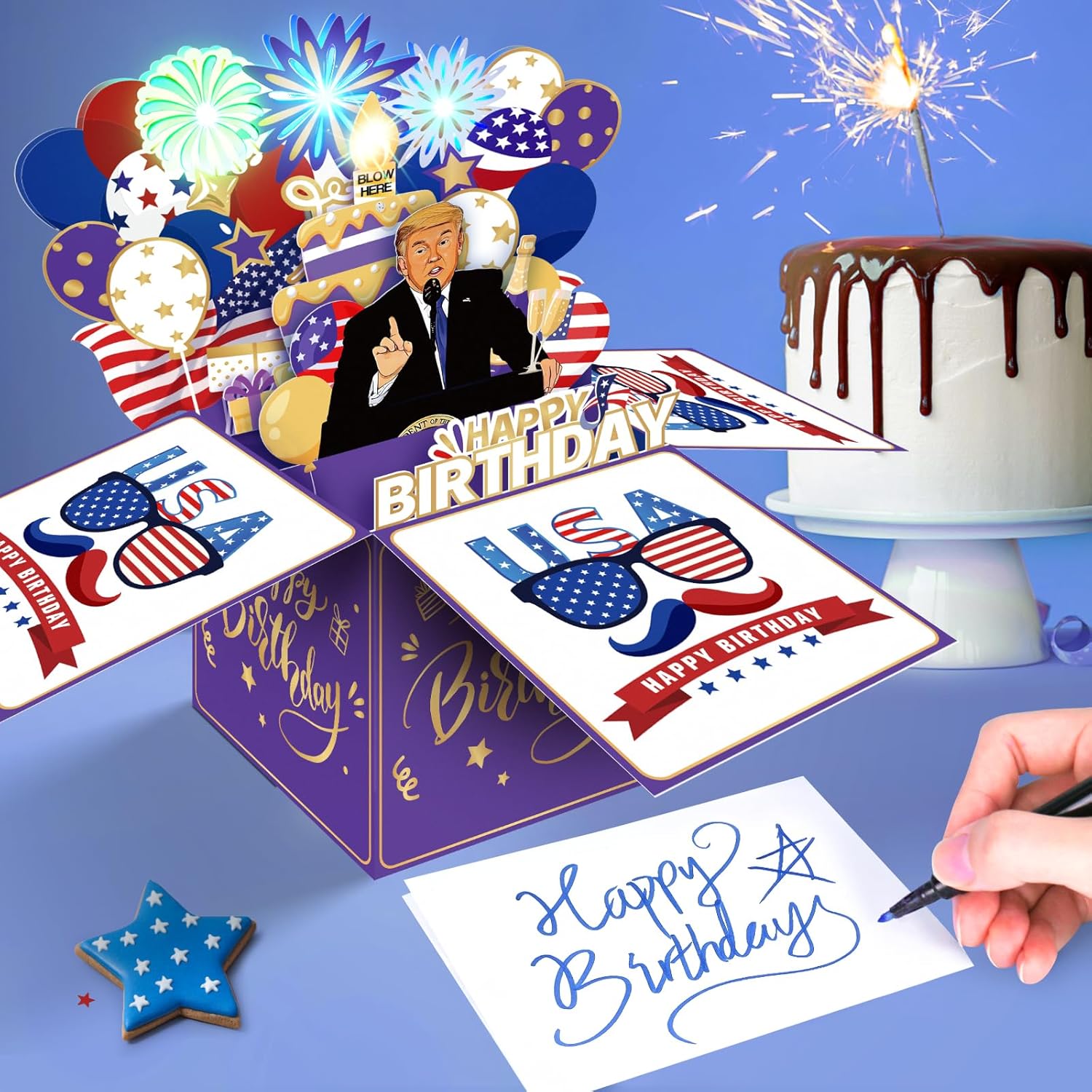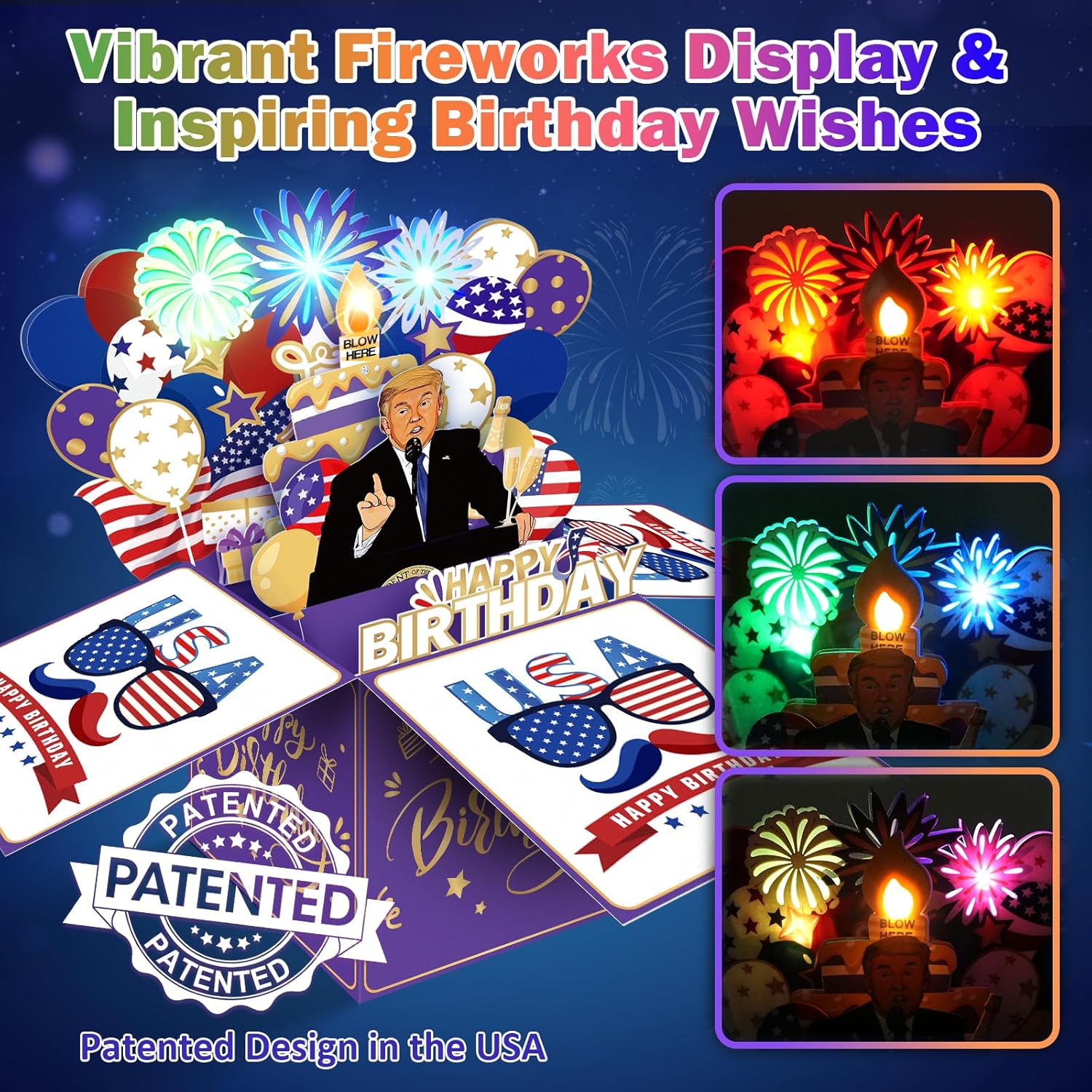 Birthday Card, Musical Pop Up Greeting Cards w Light, Blow Out Candle Greeting Cards Gifts for Him or Her (Birthday Song, Presidential Blessings & Surprise) (Purple Gold)