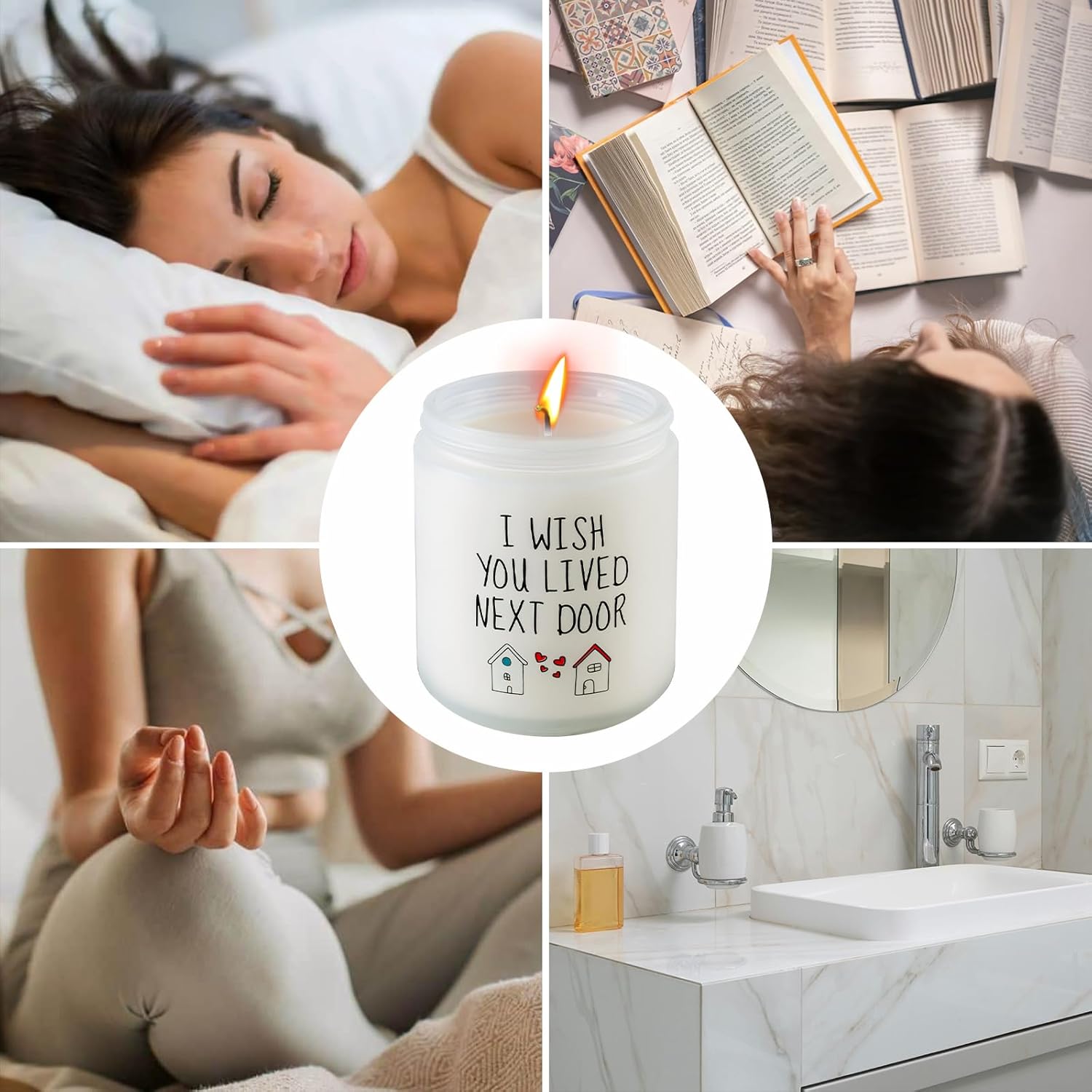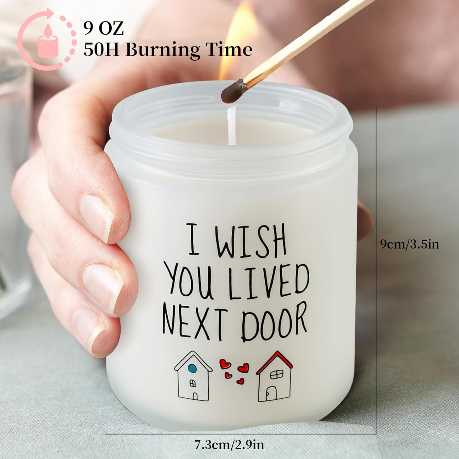 FUNNY GIFTS IDEAS: This is a funny scented candle gift since a quote ” I wish you lived next door. ” No matter who the gift is for, she will feel the closeness between you