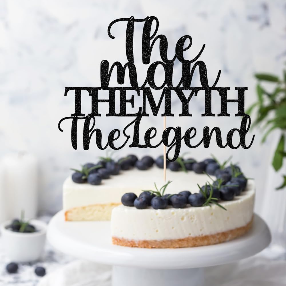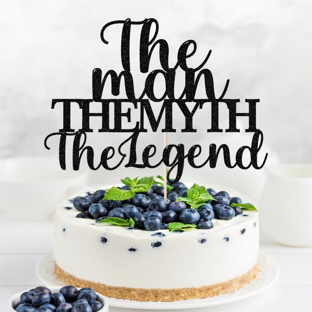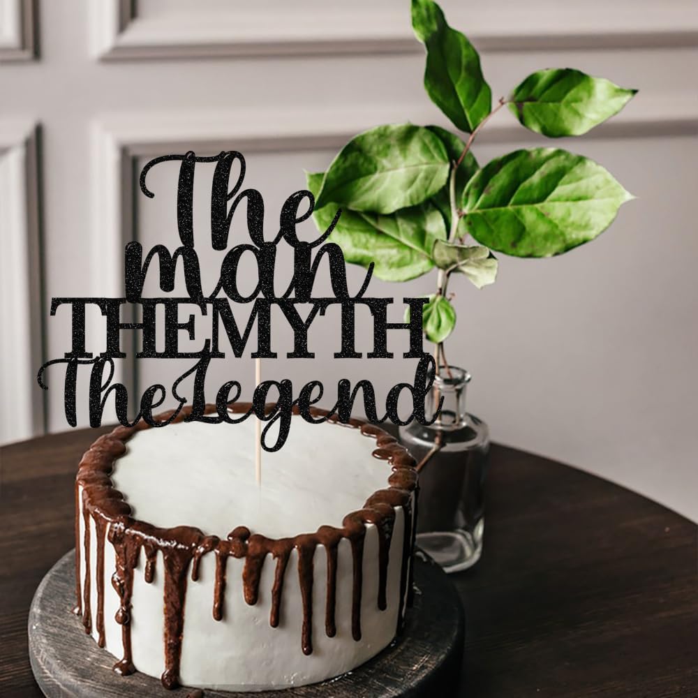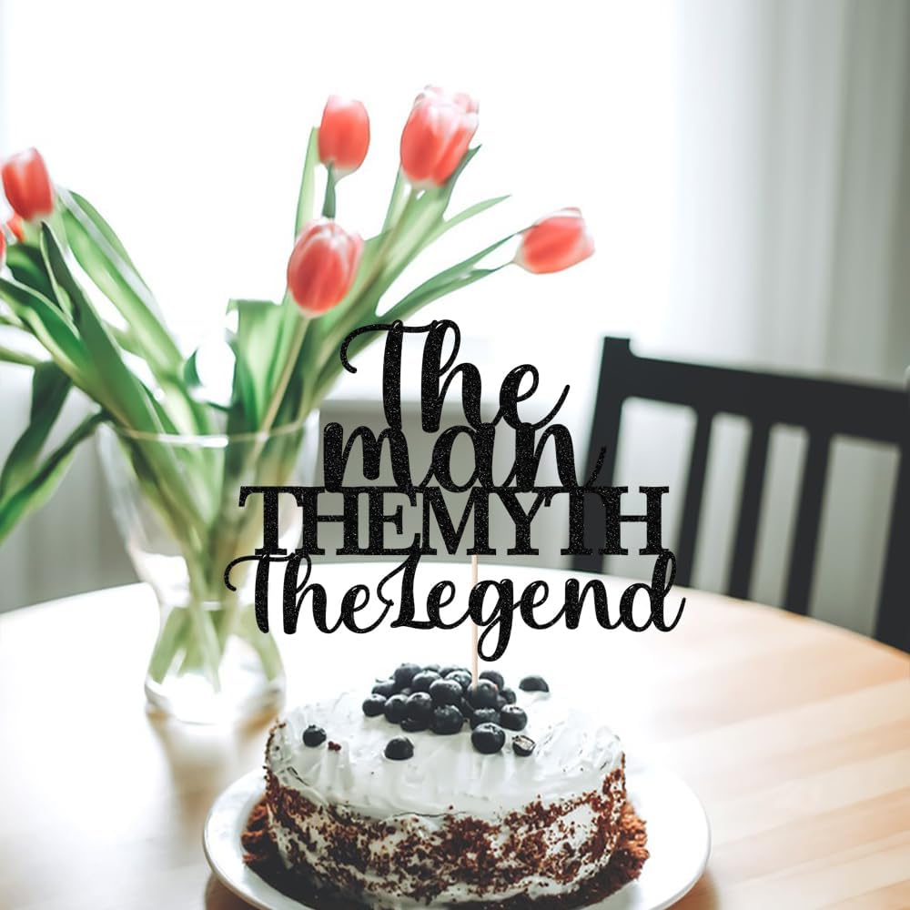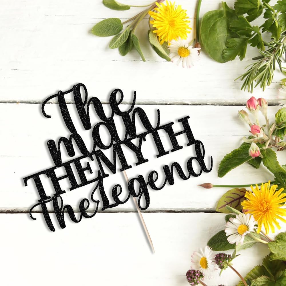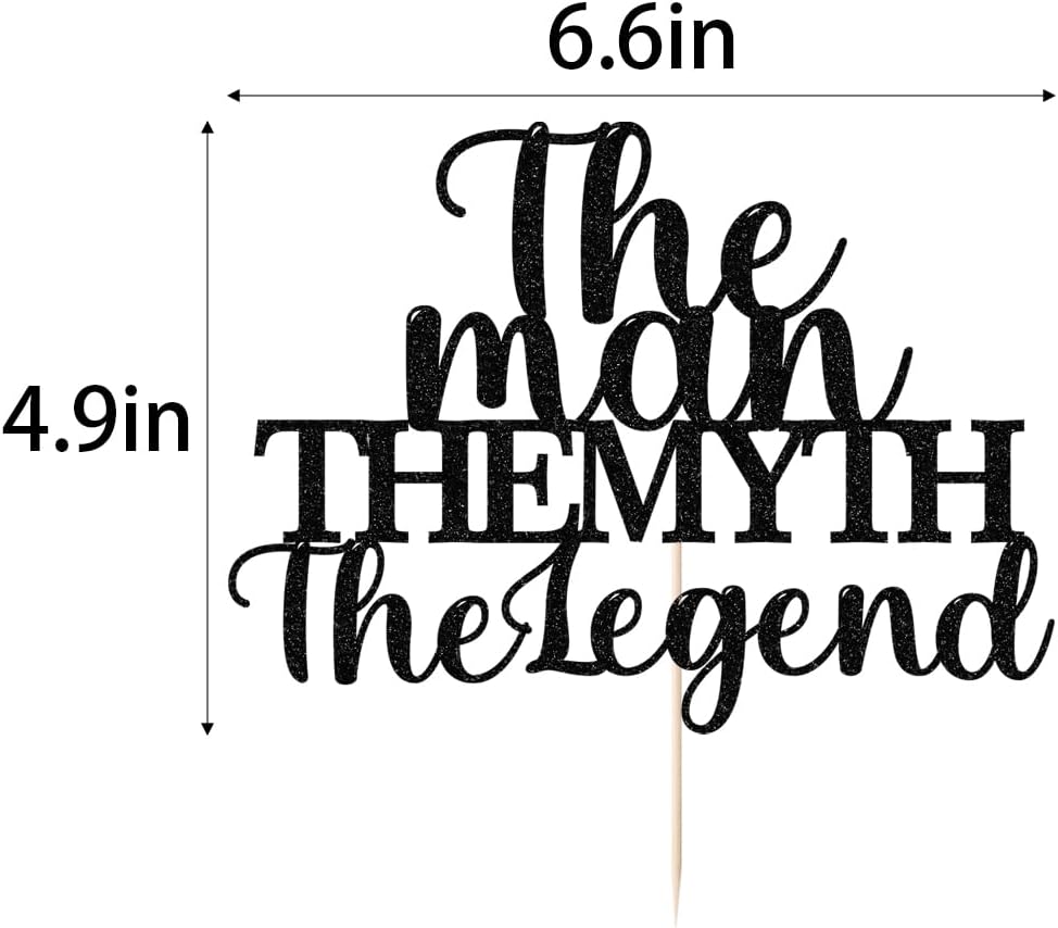 The Man The Myth The Legend Cake Topper,Glitter dad happy birthday/Father’s Day Party cake decorate Supplies,Black
