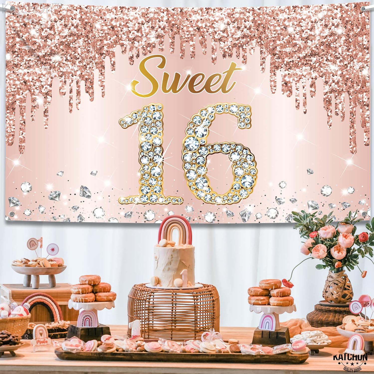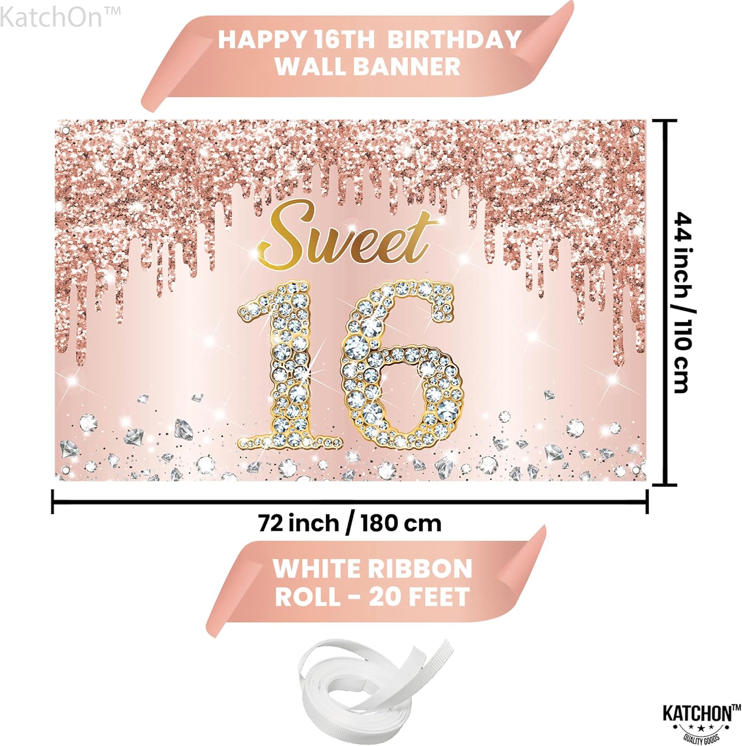 KatchOn, XtraLarge Sweet 16 Banner Rose Gold – 72×44 Inch | Sweet 16 Party Decorations | Sweet 16 Backdrop for 16th Birthday Decorations for Girls | Sweet 16 Birthday Decorations