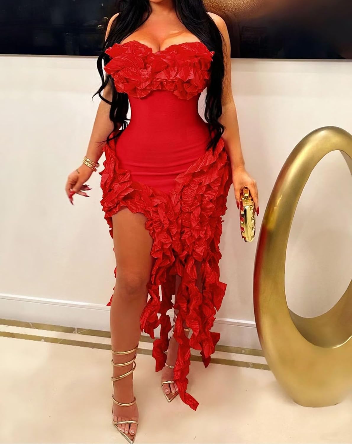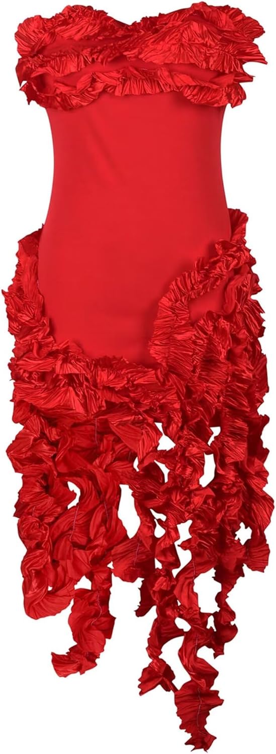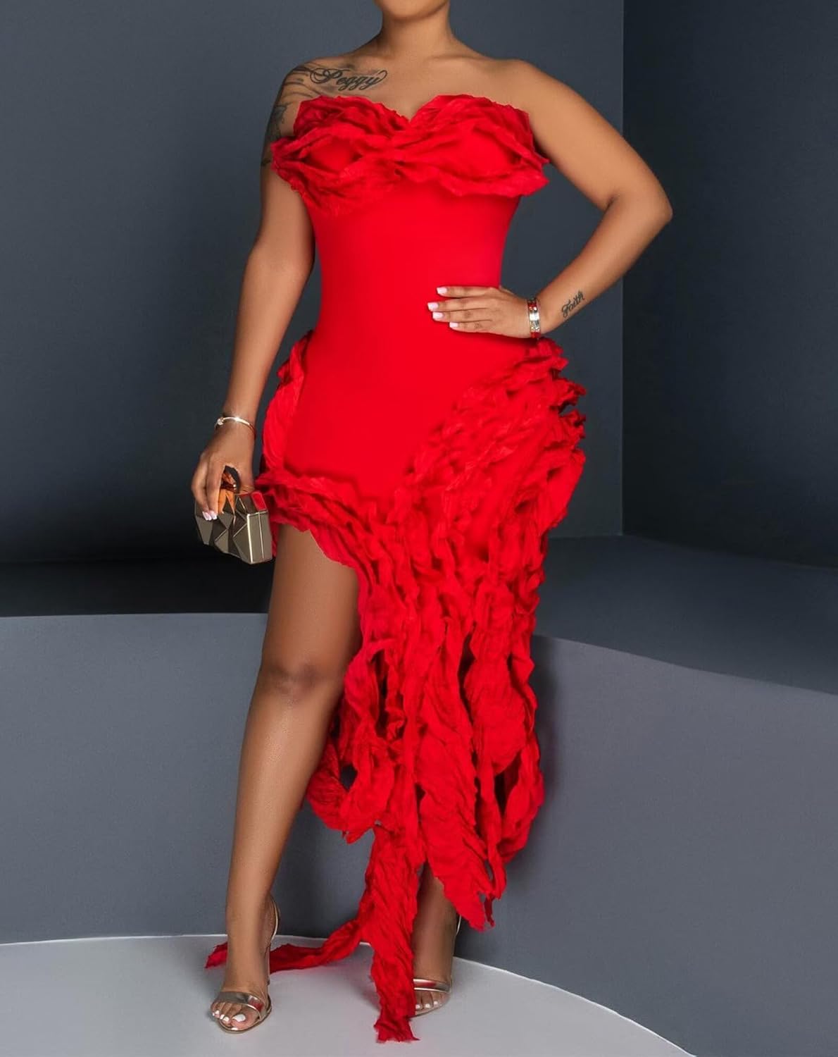 Womens Strapless Irregular Ruffle Trim Party DressWomens Strapless Irregular Ruffle Trim Party Dress