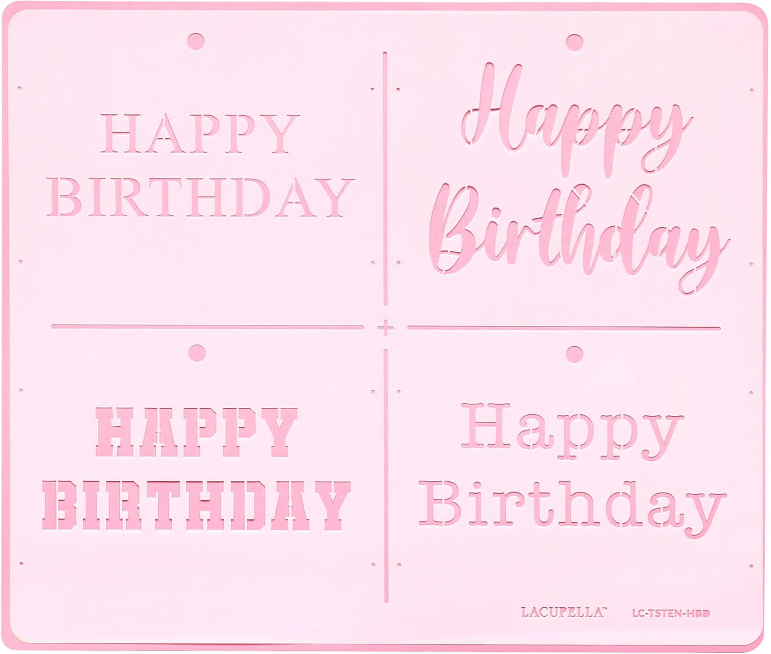 Lacupella Wish Greeting Baking Stencil with Script Serif Collegiate Typewriter Fonts for Cake, Large Cookie, Party, Events, Celebration, Drawing Journal (Happy Birthday)