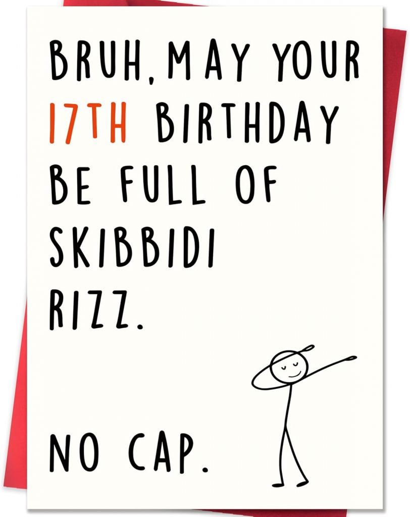 Funny 17th Birthday Card,17 Year Old Birthday Gifts & Decorations for Boys Girls Daughter Son Niece Nephew,Happy 17 Year Old Birthday Gift Ideas for Teenagers with Gen Z Slang Meme Design