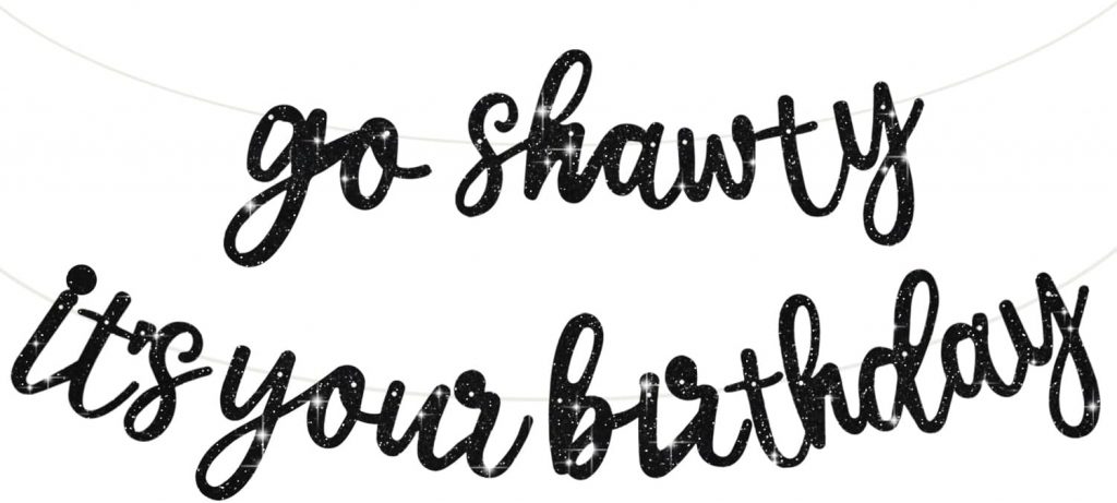 BEISHIDA Black Go Shawty It’s Your Birthday Banner-11.4Feet, NO DIY-Hip Hop Theme Glitter Happy Birthday Banner – Pre-Strung – Black Rap Theme Happy Birthday Sign for Man Women birthday Party Supply