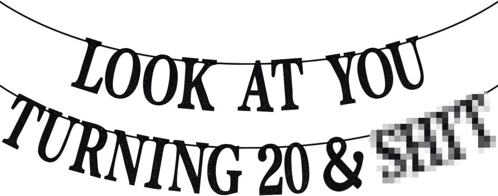 Received included: Letter cards spelling the phrase “Look at You Turning 20 & Sh*t”. Awesome