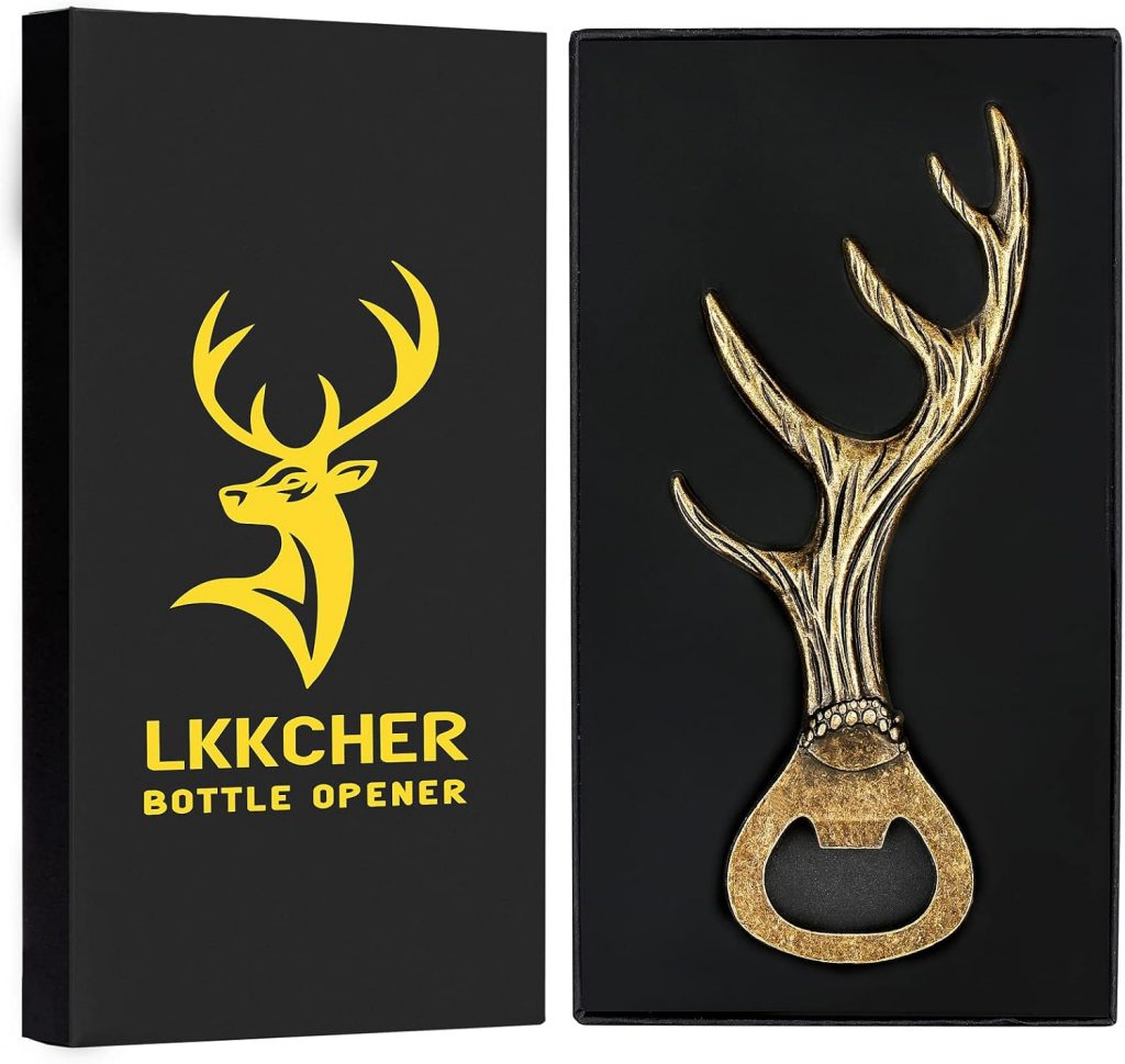 LKKCHER Deer Antler Beer Bottle Opener Stag Gifts for Women Men Wife Husband Girlfriend Boyfriend Mom Dad New Home Birthday Party Wedding Lovely Novelty Sturdy Bronze Gadget Christmas Gift Present