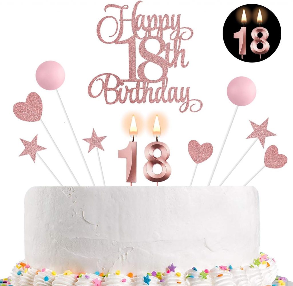 18th Birthday Cake Decorations, 18th Birthday Candles Cake Numeral Candles and Glitter Happy 18th Birthday Cake Toppers Set for Birthday Party Supplies (pink)