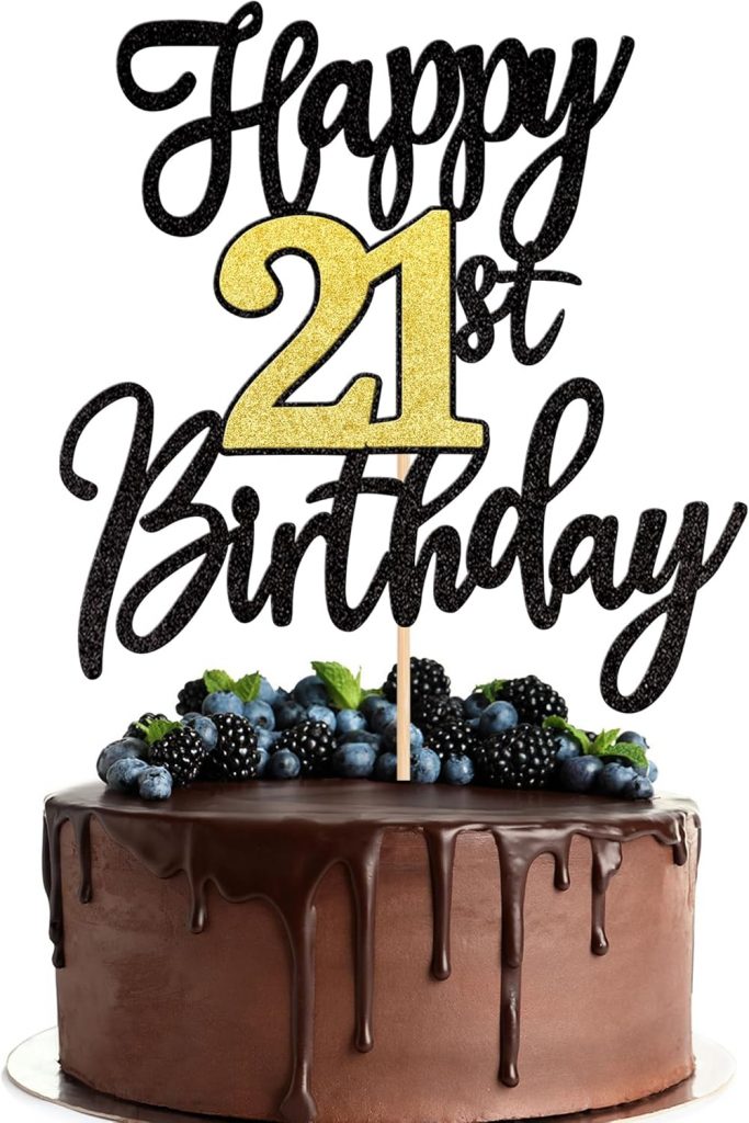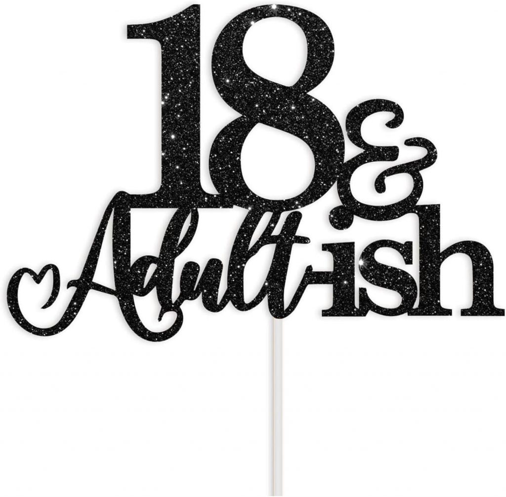 18th Birthday Cake Topper Black Glitter Happy 18th Bday Cake Topper 18 Cake Topper and Adultish for 18 Birthday Decorations 18th Birthday Decor 18 Bday Decorations for Girls Boys